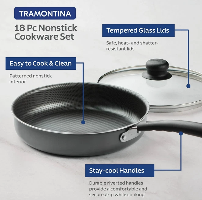 Specifications Brand Tramontina Collection PrimaWare Piece Count 18 Material Stainless Steel