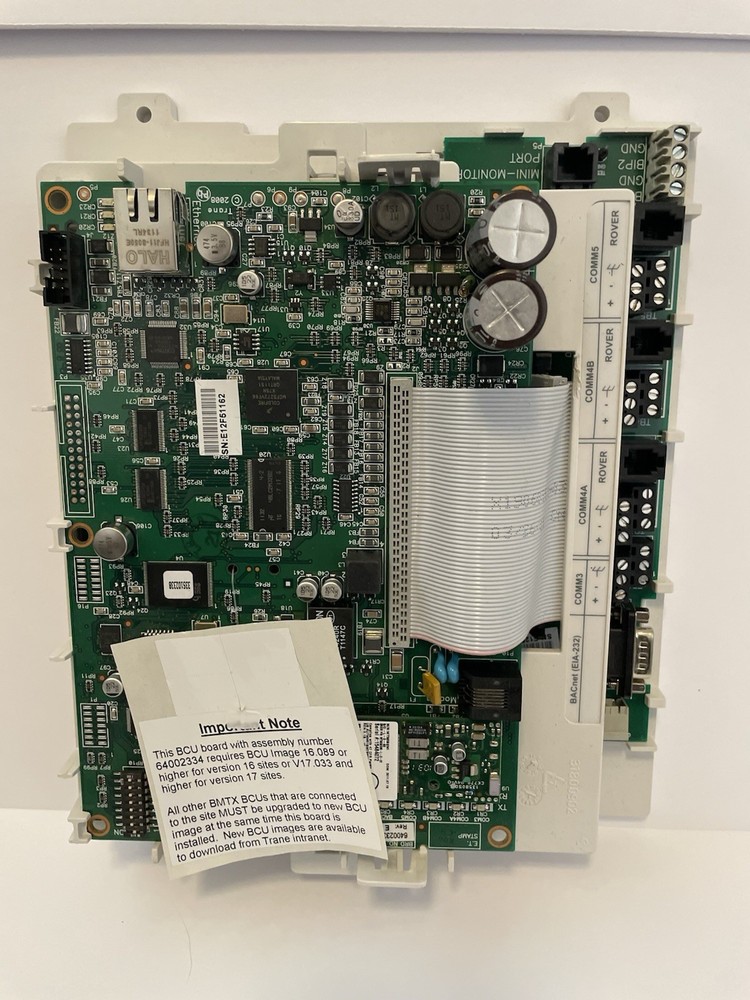 This listing is for a Trane BMTX BCU. This BCU is used and has a carrier. The ribbon cables are in good condition and the unit was in working condition when removed from the site.