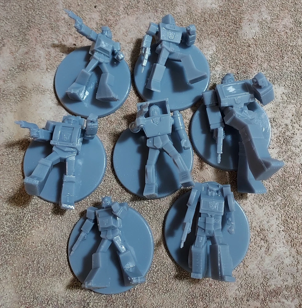 Enhance your role-playing game experience with this amazing set of seven Transformers Miniatures at 1:64 scale. The figures are UNPAINTED, bases included, but not attached, allowing you to customize them to your liking and bring them to life in your game. The set includes characters from the popular Transformers series, perfect for any fan. Includes Ironhide, Huffer, Windcharger, Hubcap, Brawn, Cliffjumper and Tailgate. These miniatures are perfect for collectors and gamers alike, and are sure to add an extra element of excitement to your game. With a range of different characters to choose from, you can create your own unique storyline and engage in epic battles with other players. Get your hands on this set today and take your gaming to the next level! Combined shipping discount available. Dice not included