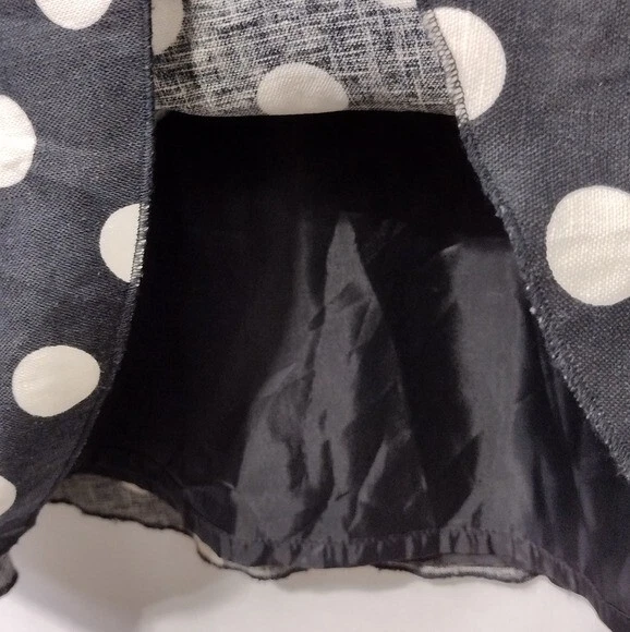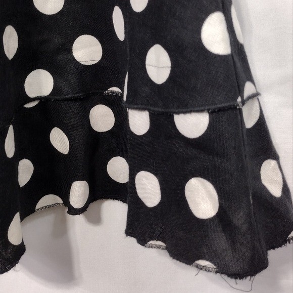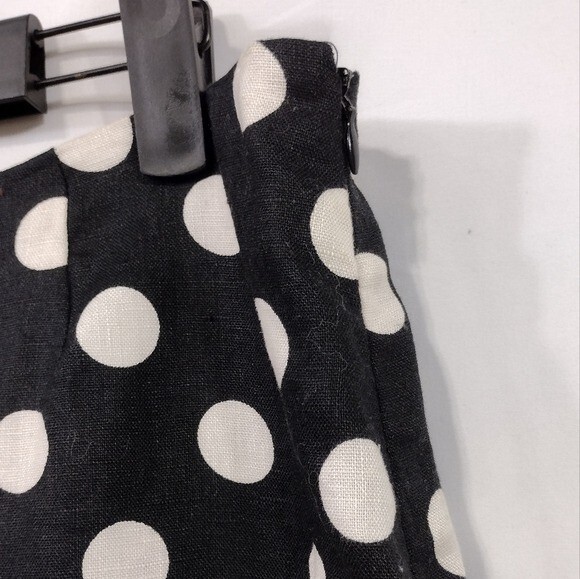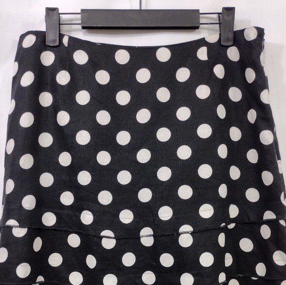 Chic and stylish polka dot skirt in classic black and white. Perfect for any occasion. Features Black White Polka dot Side zipper Tiered Lined A-line Boho Retro 90s Y2K 100% Linen Vintage Great Pre-Loved Condition SIZE 8 Measurements Pit to Pit: 16" Length: 26" Waist: Rise: Inseam: Length: Please check to be sure of fit Smoke Free Pets Free Please feel free to contact me for any questions or offer Bundle Discounts Offered Fast Shipping *50209-5773-25*