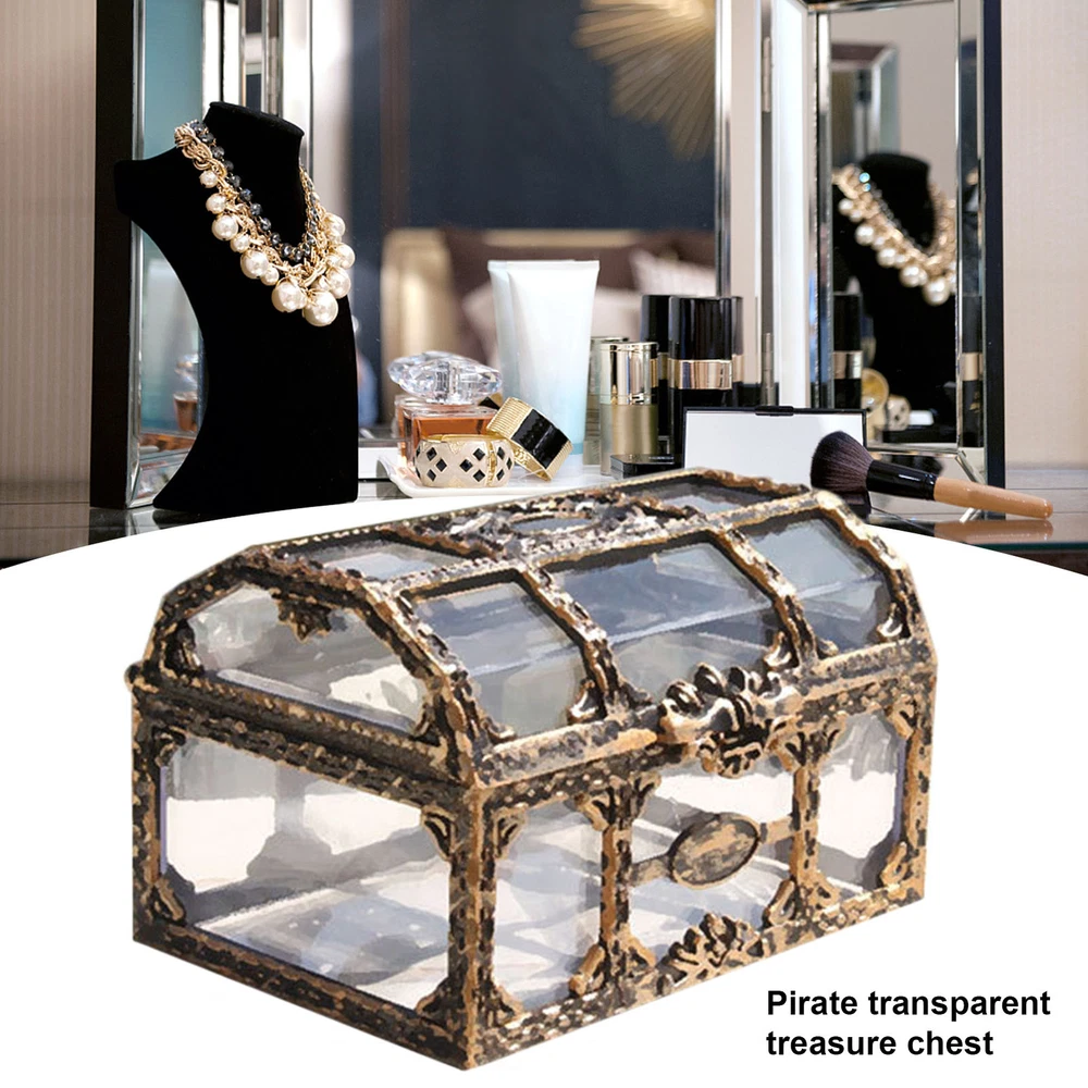 Bullet Points: Multiple-times Polishing: This Pirate Keepsake Jewelry Box has been polished several times and we have deliberately created a few small roughnesses to give the product a vintage look. Stable and Durable: The Transparent Pirate Treasure Case is robust, lightweight, and non-breakable because it is made of superior ABS material. You can use it with confidence. Jewelry Box: This Transparent Jewelry Box can be used to store your jewelry and other small items, such as necklaces, rings, earrings, etc. It keeps your jewelry neatly arranged and is a great storage piece. Great Gift: The Transparent Antique Pirate Treasure Box is a perfect gift as it is both a storage box and a vintage decorative piece that is very useful and attractive. Wide Range of Uses: The Treasure Chests are very versatile, for example, they can be used as pirate-themed party favors, Halloween party favors, Christmas gifts, or pirate role play party favors. It can also be used as a role-play prop. Description: This Pirate Keepsake Jewelry Box is a chic decorative piece. We have polished it several times and also created a few small roughnesses to bring out the retro . Specification: Name: Transparent Pirate Box Size: about 10.5*8*6.5cm/4.13*3.15*2.56in Weight: about 75g Material: ABS Packing List: 1*Transparent Pirate Box Note: Due to the lighting effects and angles, there is a color difference in the product, please understand. Due to manual measurement, there is a tolerance in the product size.