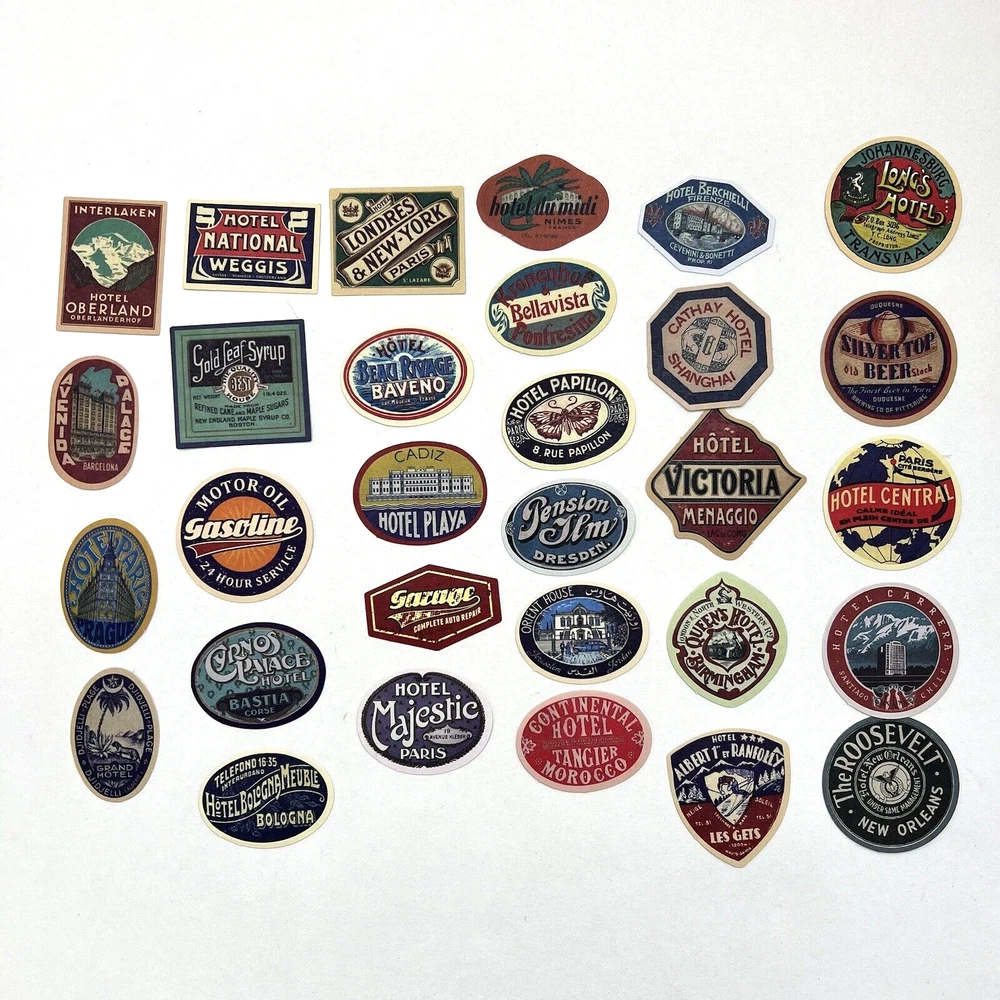 60 stickers. 30 designs x 2. Vintage style advertising for hotels, motels and more. The sticker in the last photo is approx. 1 5/8 inches in diameter. I have more stickers, washi tape and paper for sale. I do combine shipping. Please put all the items you want to purchase in ONE cart and then pay. I will refund you the difference in shipping after shipping label is printed. Let me know if you have any questions through eBay messaging. Thank you for stopping by!