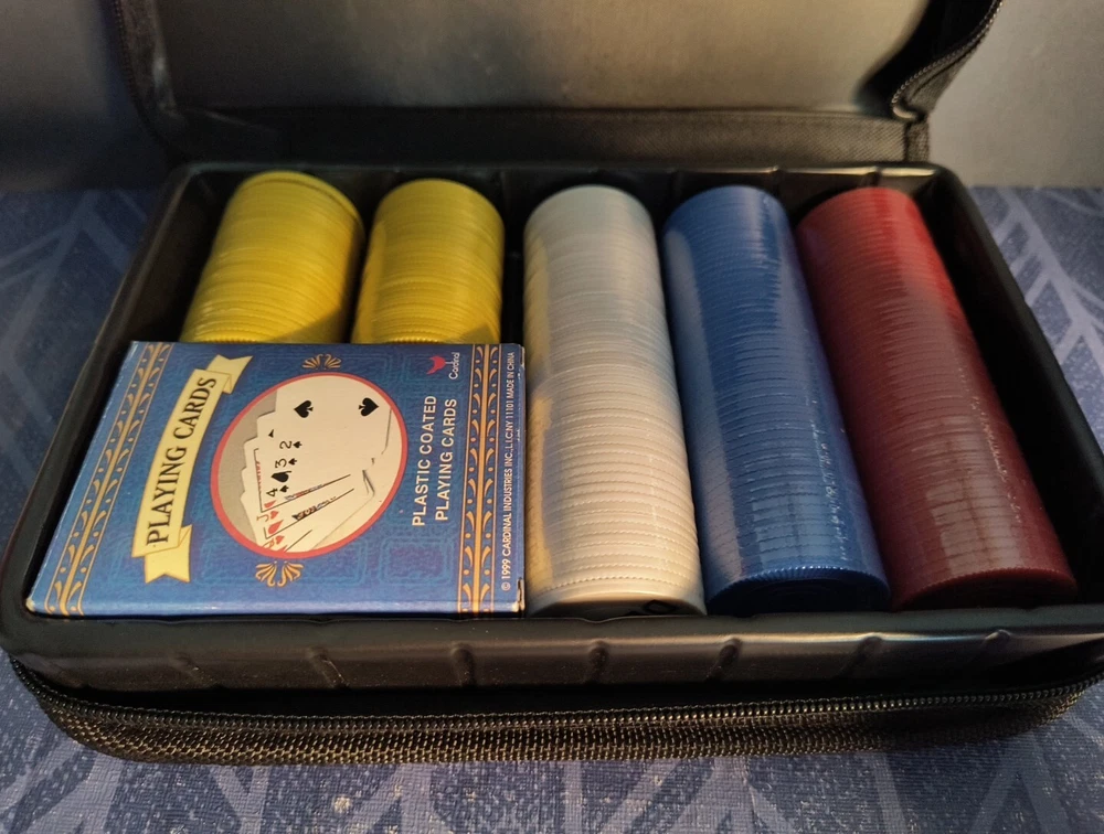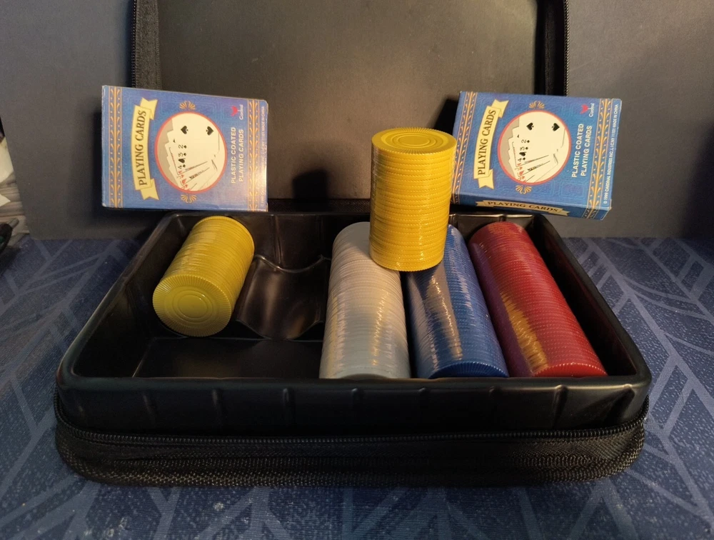This Traveling Poker Chip Set is the perfect addition to any poker enthusiast's collection. With 200 chips and two decks of cards, this set allows for endless hours of gameplay. The set comes in a convenient zippered case, making it easy to transport and store. This set is perfect for those who love to travel and play poker, or for those who simply enjoy the game and want a reliable and high-quality set.