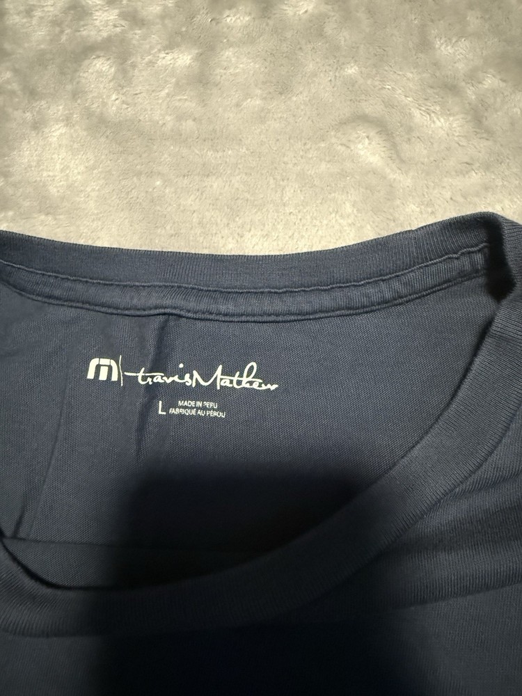 Travis Mathew Turnberry Golf T-Shirt Men's Large Blue Camo Pocket Logo Tee. Condition is Pre-owned - Good. Shipped with USPS Ground Advantage.