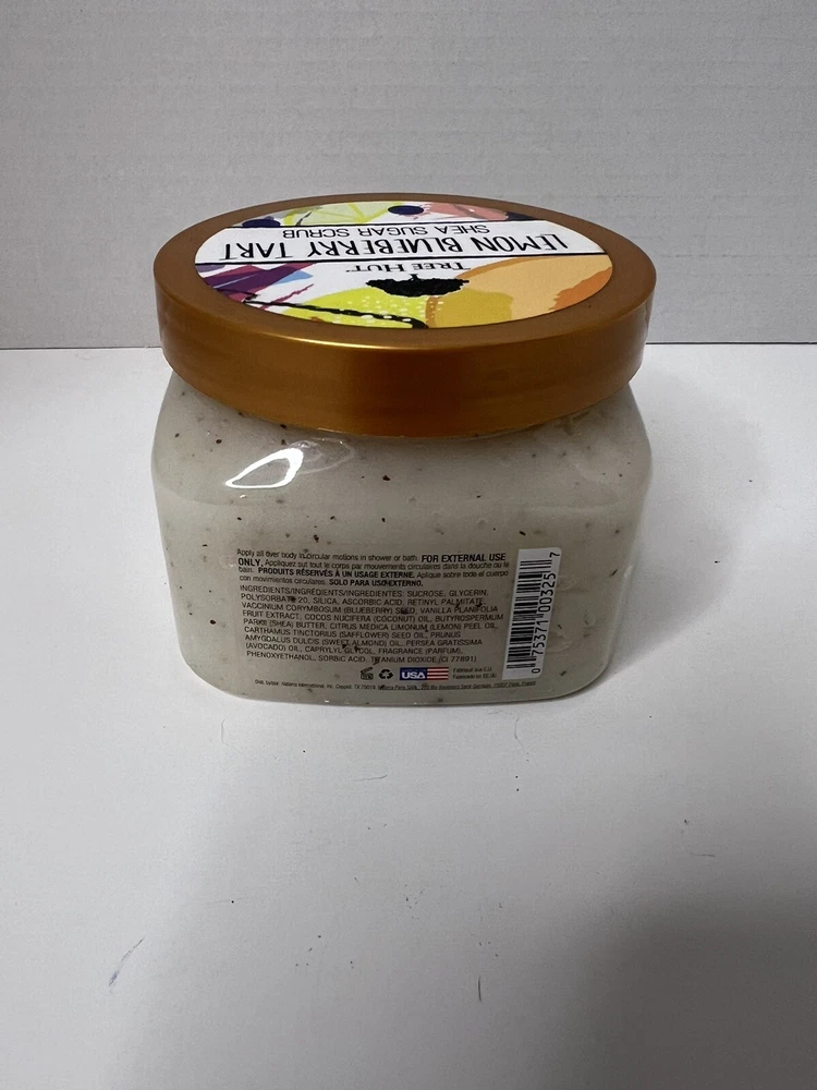 Department: Unisex Formulation: Scrub Type: Body Scrub Body Area: Full Body Country/Region of Manufacture: NA Set Includes: Body Scrub Volume: 18 Oz Features: Candied Lemon Scent Brand: Tree Hut Bundle Description: NA Expiration Date: NA Skin Type: All Skin Types MPN: NA Color: White Product Line: Tree Hut Shea Sugar Scrub Main Purpose: Exfoliating Period After Opening (PAO): 12M Custom Bundle: No Size: Regular Scent: Lemon Blueberry