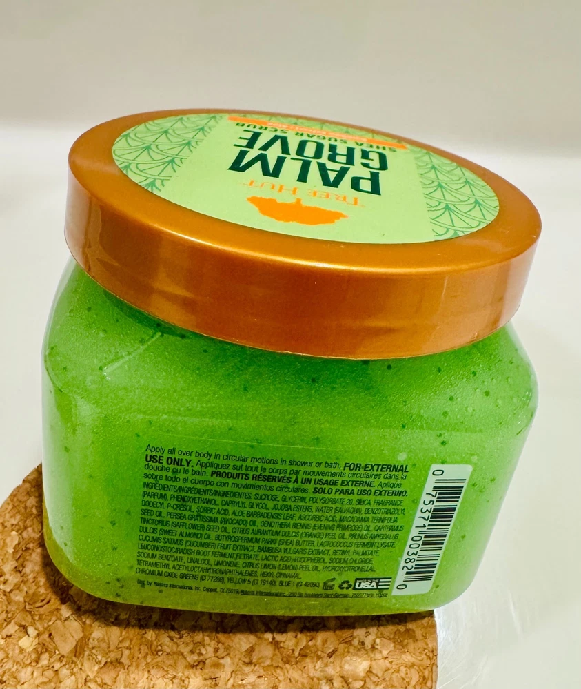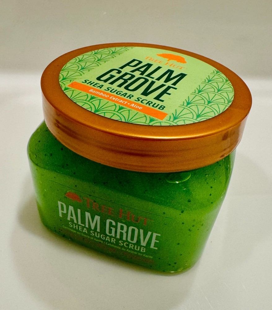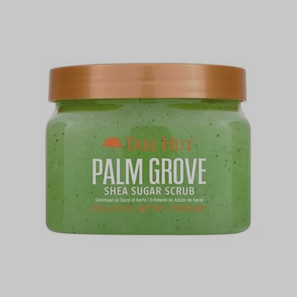Tree Hut Palm Grove Shea Sugar Body Scrub – Exfoliating & Hydrating Body Scrub Scrub away dull, dry skin and reveal soft, glowing skin with Tree Hut Palm Grove Shea Sugar Body Scrub. This exfoliating sugar scrub is made with real Sugar, Shea Butter, Bamboo Extract, Aloe, and a blend of six natural oils to deeply nourish and balance skin’s hydration. The relaxing, earthy scent features notes of palm fronds, jasmine, and amber, turning your shower or bath into a spa-like experience at home. Perfect for daily use, self-care routines, or as a thoughtful gift. Product Benefits: Gently exfoliates to remove dead, dry skin Leaves skin soft, smooth, and glowing Deeply moisturizes and nourishes Helps improve skin hydration and texture Gentle enough for sensitive skin Key Ingredients: Sugar – Natural exfoliant that polishes skin Shea Butter – Moisturizes and softens Bamboo Extract – Helps soothe skin Aloe – Calms and hydrates Avocado Oil, Macadamia Oil, Sweet Orange Oil, Sweet Almond Oil, Evening Primrose Oil, and Safflower Oil – Help condition and prevent dryness Clean Formula: Alcohol-free Paraben-free Sulfate-free Gluten-free Formaldehyde-free Vegan How to Use: Apply to damp or dry skin, massage in circular motions, and rinse thoroughly. Perfect addition to any bath and beauty routine.