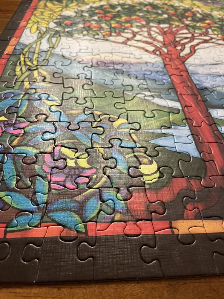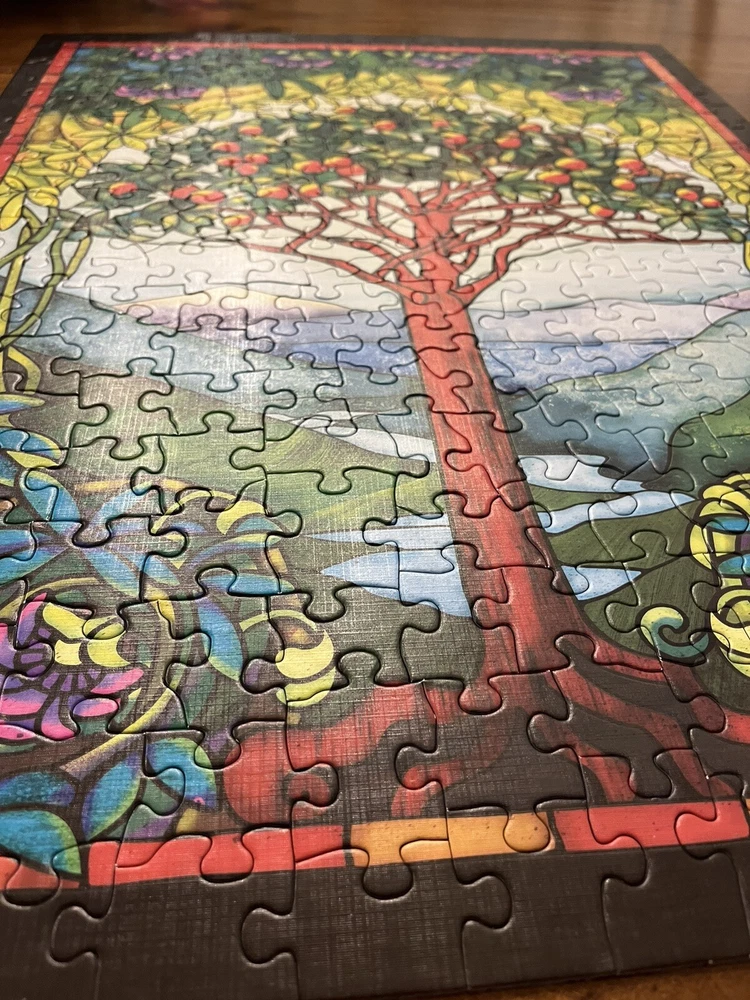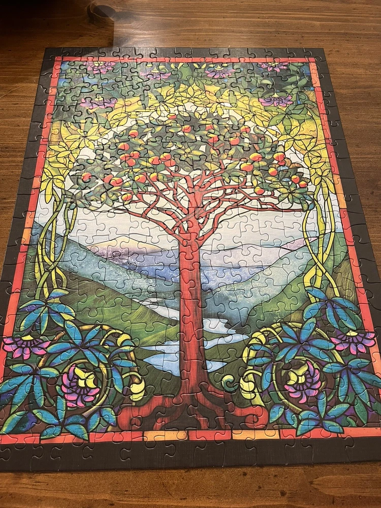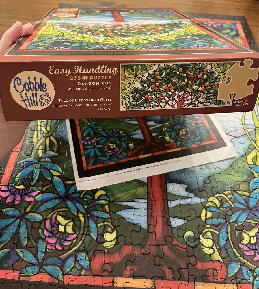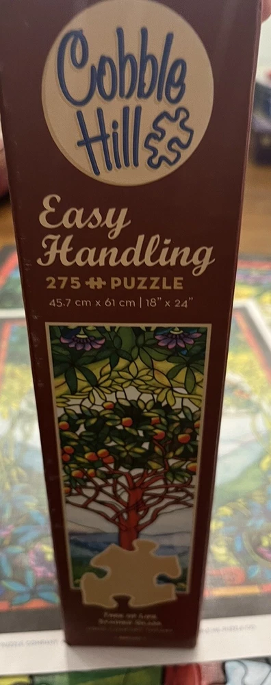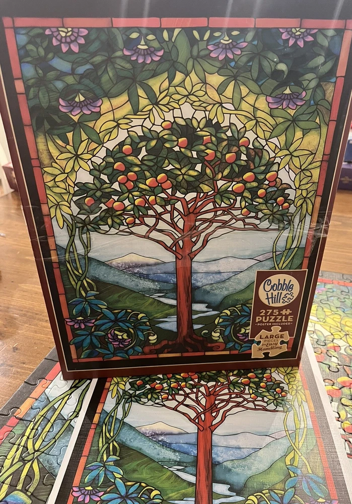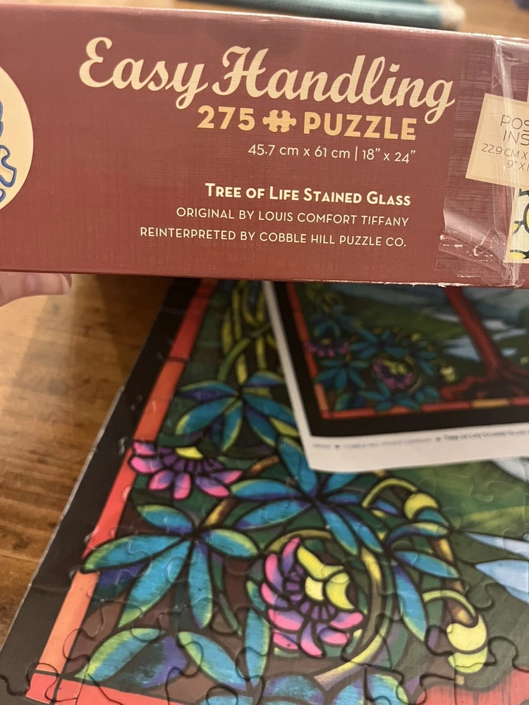 This puzzle is in good pre-owned condition. There is tape on the outside of the box. This stunning jigsaw puzzle features a beautiful piece of art that will surely captivate any puzzle enthusiast. The Tree of Life Stained Glass 275 Large Piece Jigsaw Puzzle Cobble Hill is a must-have for anyone who loves puzzles and art. With its multi-color design and tree theme, this puzzle is sure to add a touch of nature and color to any room. Crafted from high-quality glass, this puzzle is durable and will last for years to come. The puzzle contains 250-499 pieces, making it a great challenge for anyone who loves a good puzzle. The Tree of Life Stained Glass Jigsaw Puzzle is perfect for anyone who wants to relax and relieve stress while enjoying a fun and engaging activity.
