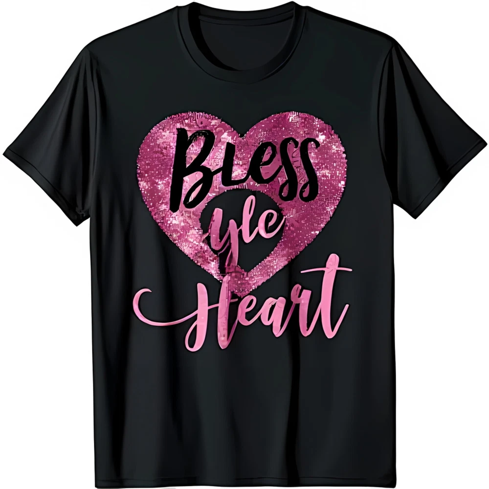 Trendy Black T-Shirt with Pink Glitter Heart & Bless y le Graphic