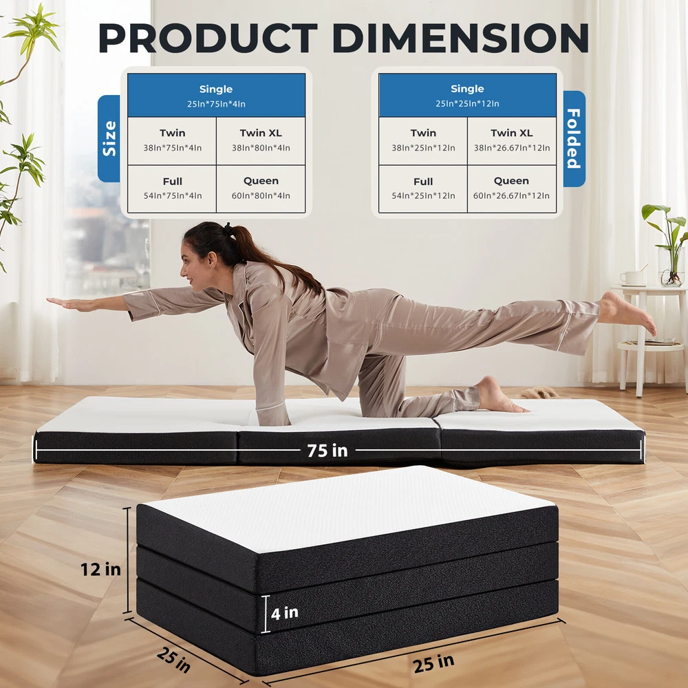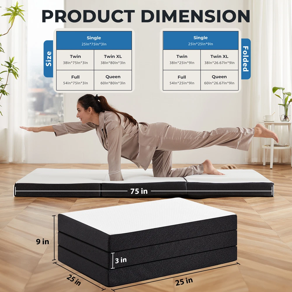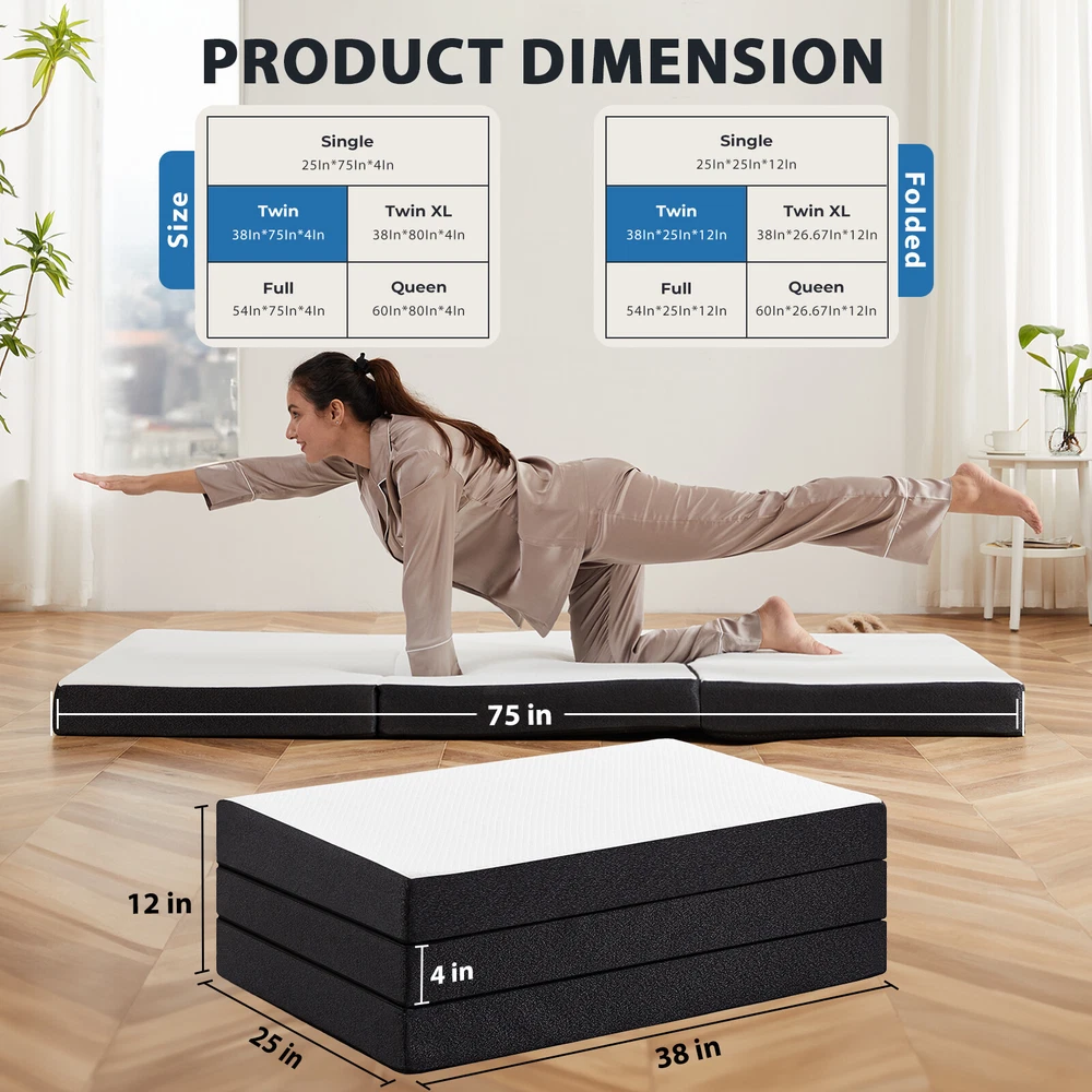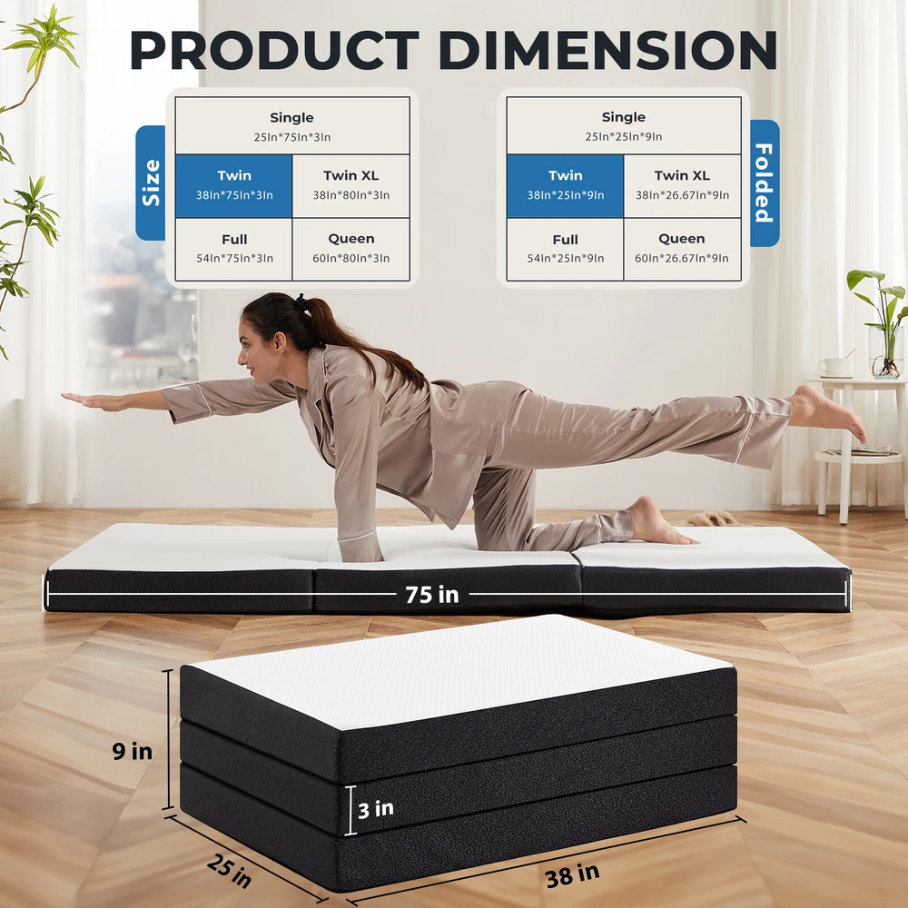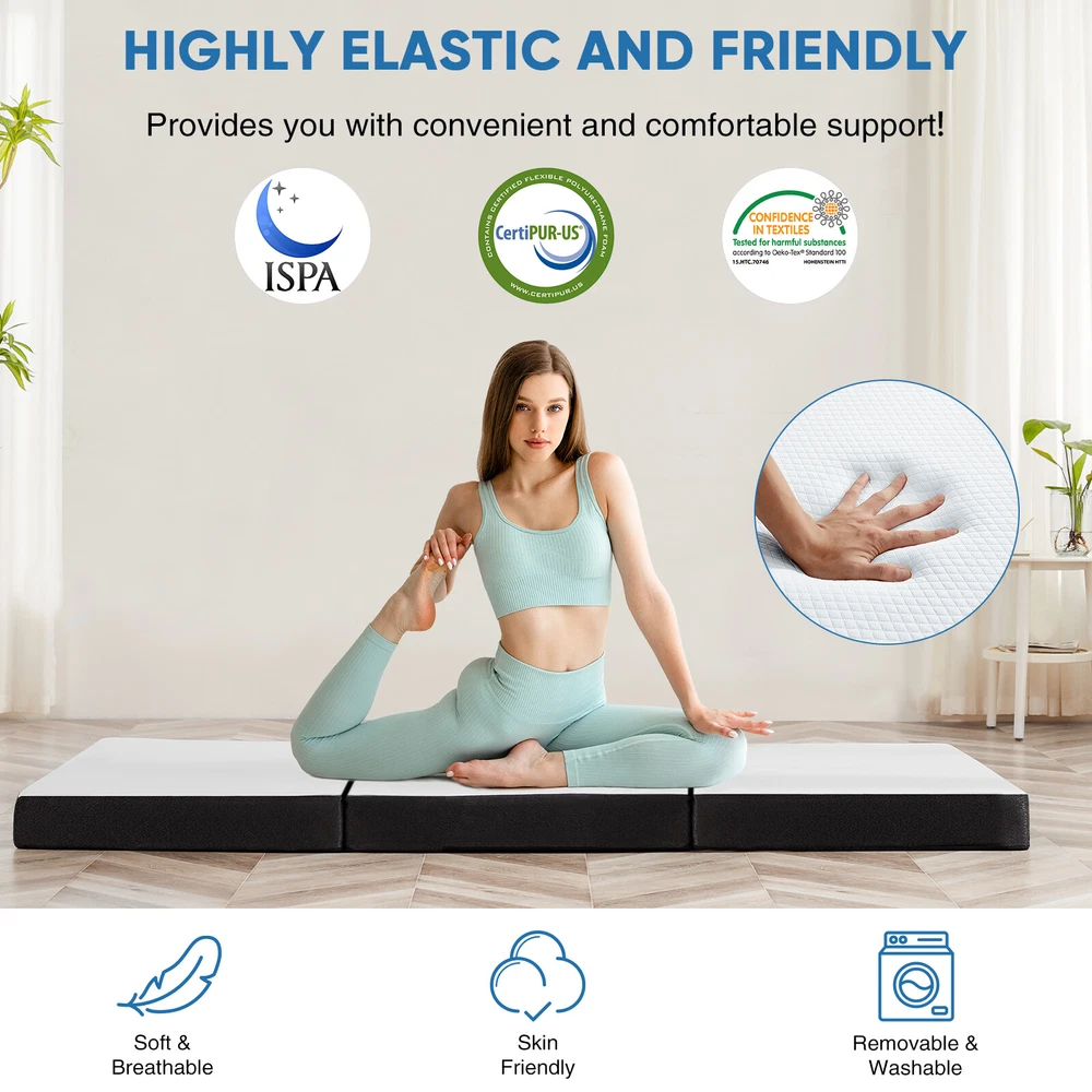 Tri-Fold Memory Foam Bedroom Folding Mattress Portable Topper Floor Bed Mat