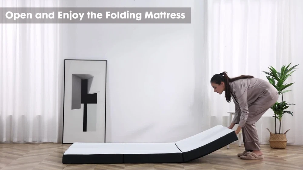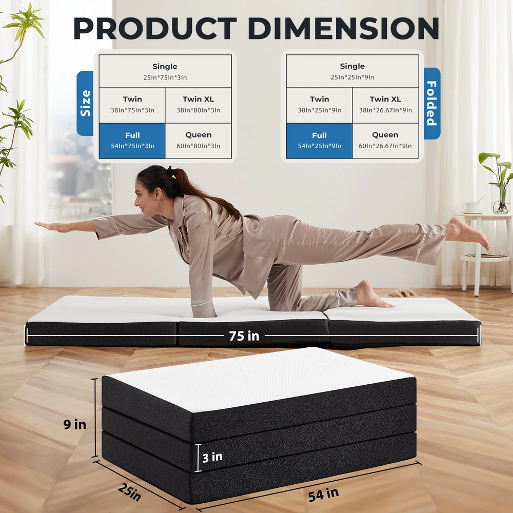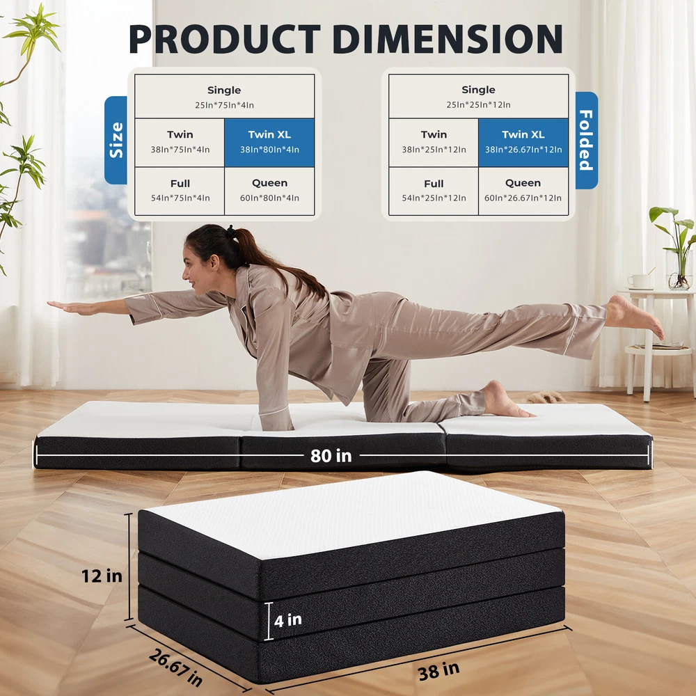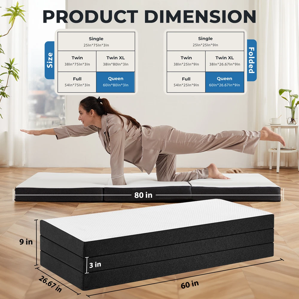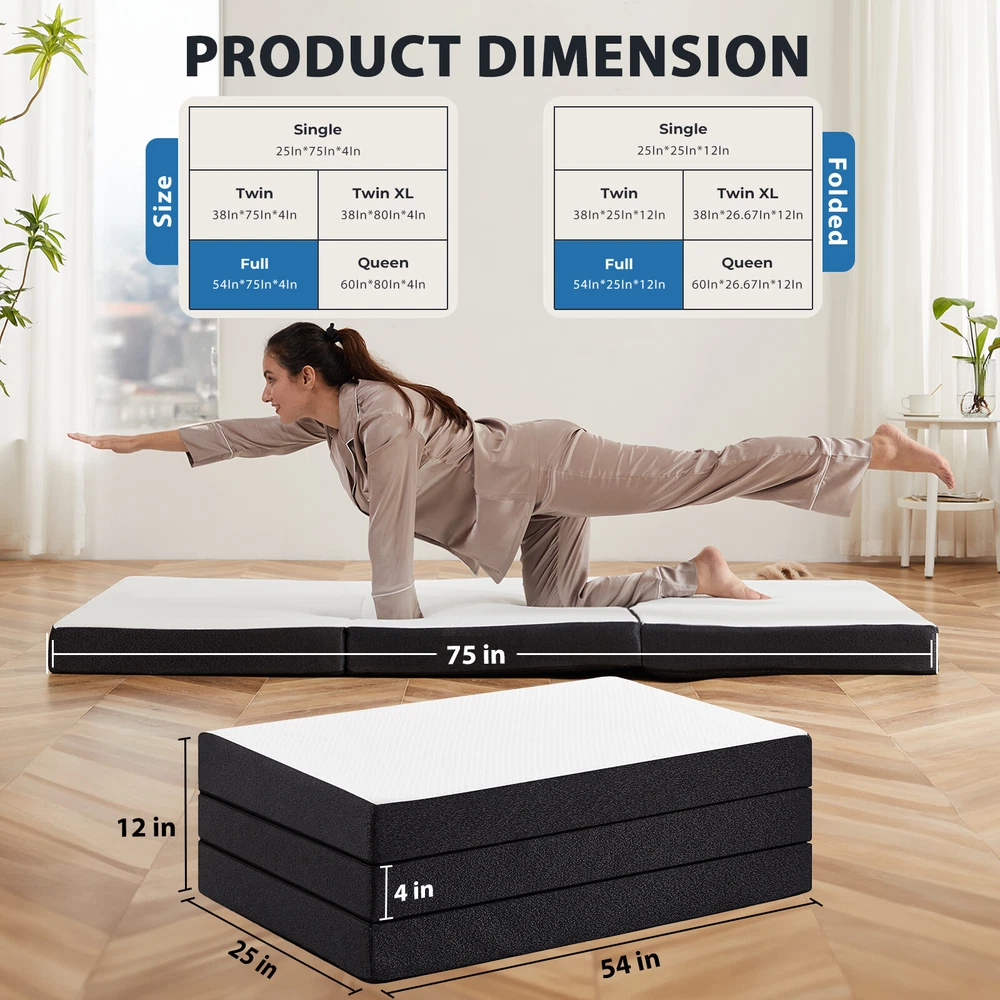 Tri-Fold Memory Foam Bedroom Folding Mattress Portable Topper Floor Bed Mat