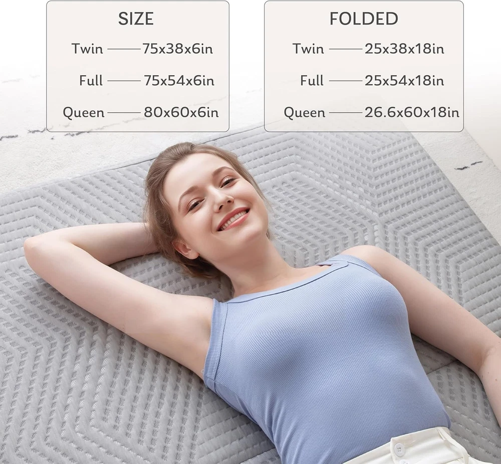 Product description MLILY Memory Foam Tri-fold Mattress Every layer is designed to provide a more comfortable experience Can be used in many situations in your life Compact Size for Easy Storage The video showcases the product in use. The video guides you through product setup. The video compares multiple products. The video shows the product being unpacked