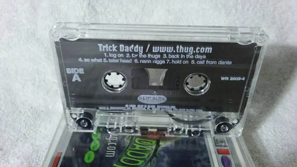 This cassette features the iconic Trick Daddy's album "www.thug.com" released in 1998. The clear jewel case contains the standard cassette format with a clear color design. The inlay is in mint condition and the case is very good plus (VG+). This album is a must-have for any fan of rap and hip-hop genres. The cassette has not been modified and does not come with any custom bundles. It is a great addition to any music collection. The case has scuffs from storage but the cassette and inlay are in perfect condition NOTE: Due to previous customers abusing the system of cassette returns. I will not be accepting returns at this time. If you message me I can certainly make an exception to accept the return. Everything is photographed,TESTED prior to packaging and packaged with care. [1998 - Warlock]