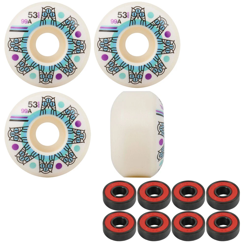 Product Description Triclops Skateboard Wheels Roulette 53mm 99A White with Abec 5 Bearings This package includes 1 set of wheels (4wheels) and 8 bearings. Solid all around wheel for any terrain. Durable, classic formula, made to last. Amp bearings are the epitome of durability and speed. These high-quality ABEC 5 bearings are strong enough, fast enough, and more than resilient enough to help you carve or cruise your own path. With a thermally applied coating to enhance corrosion resistance and hardened steel balls for a higher Rockwell rating, these bearings will ensure long-lasting durability to keep you rolling. Including fritcion-free rubber shields pre-lubricated with Amp Synthetic Speed Oil. BRAND Triclops MODEL Roulette SIZE 53mm COLOR White CONDITION Brand New The feeling of a new set of wheels is second to none. Well, maybe it’s second to saving a bunch of money. Get the best wheels at the best price from TGM Skateboards. We have hundreds of wheels available, no matter what you are looking for. Traditional skate wheels, cruiser wheels, longboard wheels…we’ve got them all at the absolute best prices available! Wheels are measured by Diameter (Width) and Durometer (Hardness). 50mm to 54mm with a hardness of 99A – 101A is the most common size wheel for street and park skaters, while 55mm to 64mm is typical for bowl and old school skaters. The larger the wheel, the longer the roll. The softer the wheel, the smoother the roll. Softer wheels are great for rough terrain and are also quieter (which is why filmers prefer large, soft wheels). Ultimately, it comes down to personal preference and the type of terrain the skateboard will be ridden on. 17 years being eBay's premier skateboard retailer with 350,000 positive feedback! With over 20,000 items in stock, we are experts on all aspects of skateboarding, longboarding, customer services, shipping speed and bang for your buck. Copyright ©2018 TGM Skateboards | All Rights Reserved
