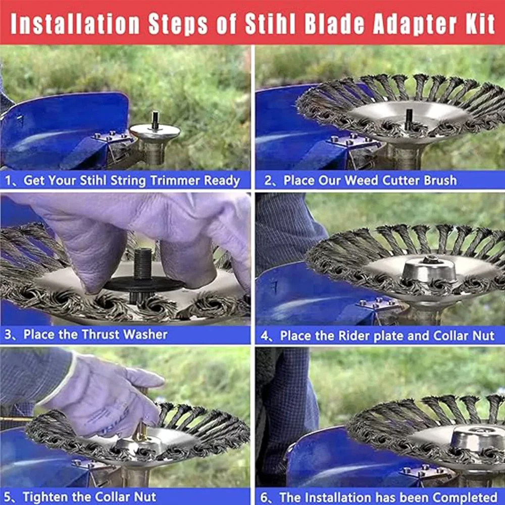 Product features:🌱 1. Wire brushes are mainly used for deburring, dedusting, removing oxide layer, polishing and polishing accessories, which can improve the coating quality of metal stone. 2. Internal fixing plate structure to ensure consistency and safety. 3. Provide smooth performance and flexibility through kinking lines. 4. They put the brush on the trimmer and started repairing as usual. 5. Made of high-quality steel wire, it is durable and has a long service life. Features:🌱 * No rust, durable and long service life. It consists of an internal fixing plate. * The performance, safety and quality of this wire wheel are all tested by 100%. Specifications:🌱 Product type: mower parts Material: aluminum-copper alloy Weight: about 1155g Material: steel wire Size: 8 inches Color: silver Package includes:🌱 Package Includes 1 x steel wire cutter trimmer head 1 x rider plate 1x collar nut(diameter 0.3inch) 1x collar nut(diameter 0.315inch) 1x thrust guard washer (6 teeth) 1x thrust guard washer (10 teeth) 1 x thrust washer(0.4inch) 1 x L wrench PRODUCT WARRANTY 🌱 -60 Days Warranty After Product Arrived.! Feedback 🌱 Do not post negative or neutral feedback before contacting us, We will try our best to satisfy you. We’ll automatically leave you a positive feedback after receiving your prompt payment. Your positive feedback we appreciate. Please leave us a positive feedback after receiving your order and if you’re satisfied with it. To our esteemed customers: 🌱 Greetings! If you buy a package in our store if you show any problem please do not worry, we will certainly solve the problem for you, please feel free to contact us, we will communicate with you within 24 hours to confirm that you provide programs to solve the problem! Thank you for every one in my store to buy you, have a good day ~!