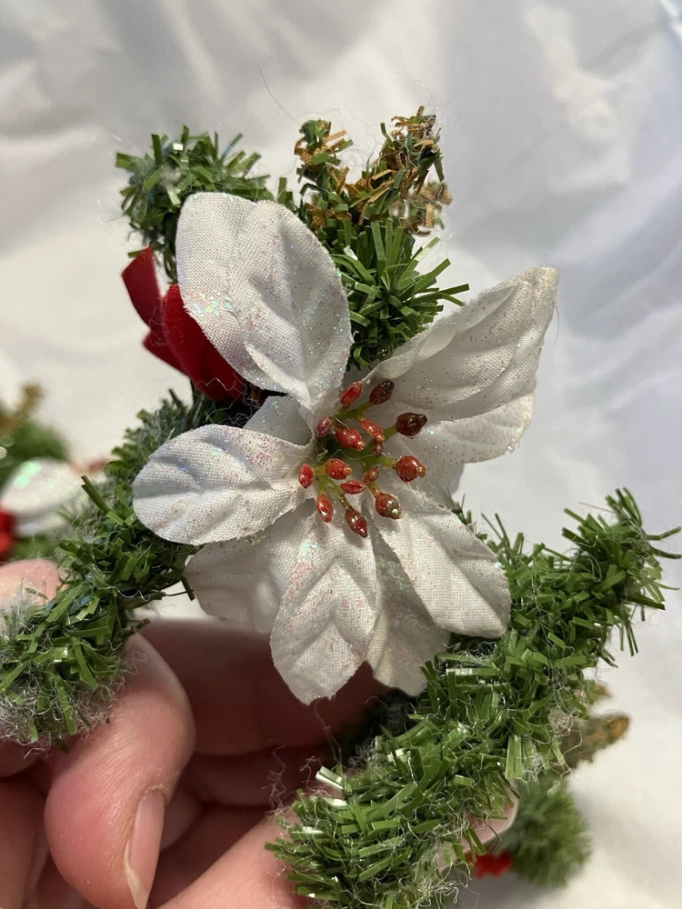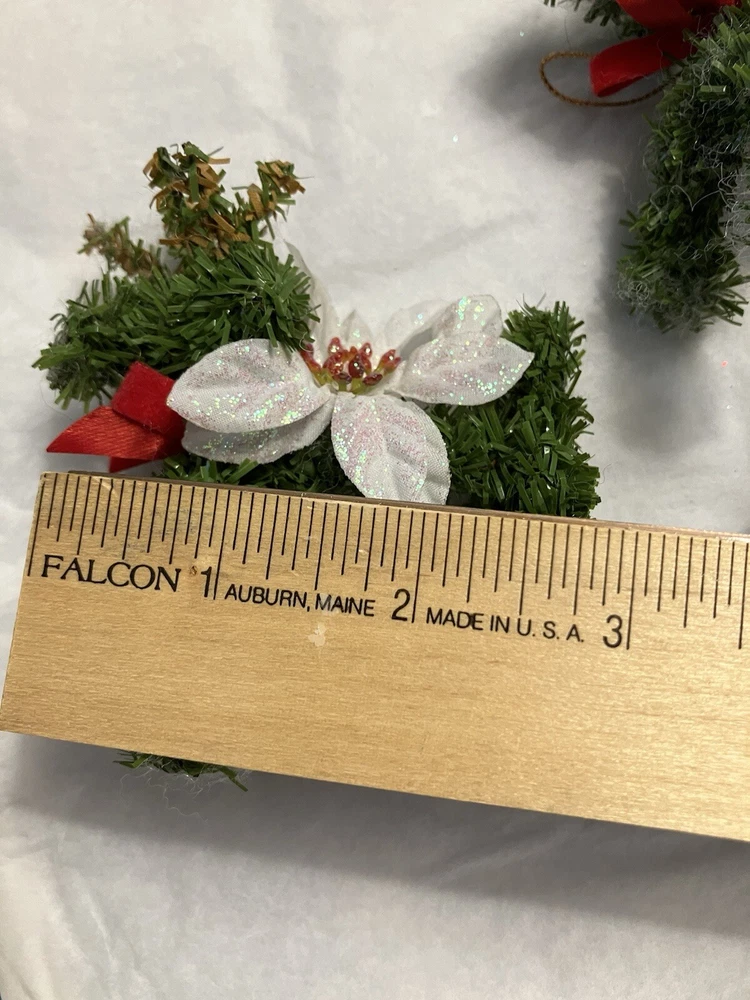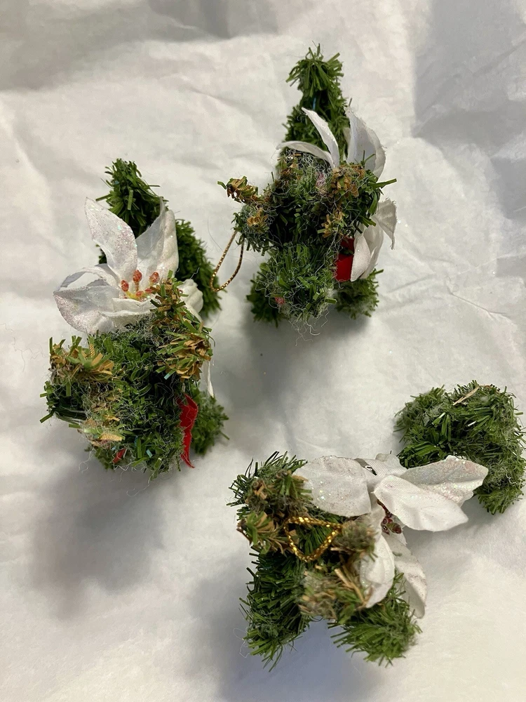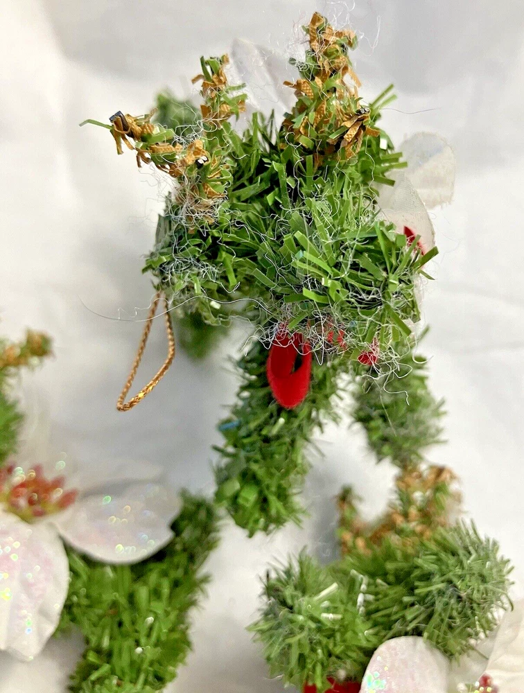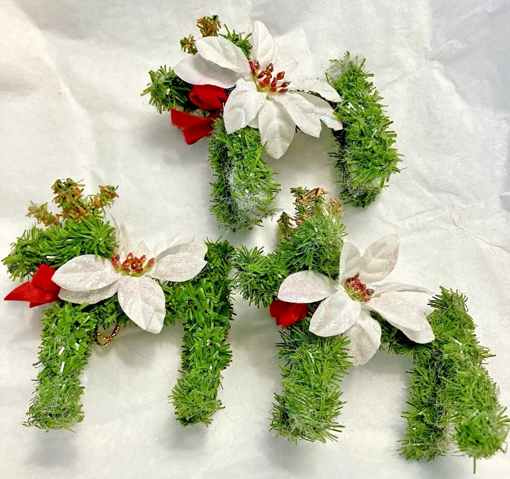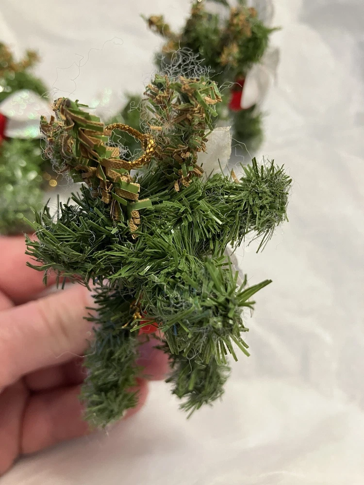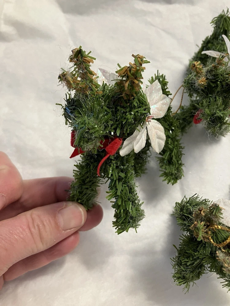 Trio of Christmas Reindeer Decoration/Ornaments 3" x 2.5" Hard to take a good picture of these, they're just cute. Some of the white fuzzies are from another ornament, I'll defuzz when I ship.