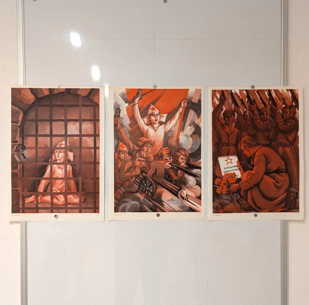 Triple Poster Triptych 1984 - Original Soviet - Feat of a teenager World War II