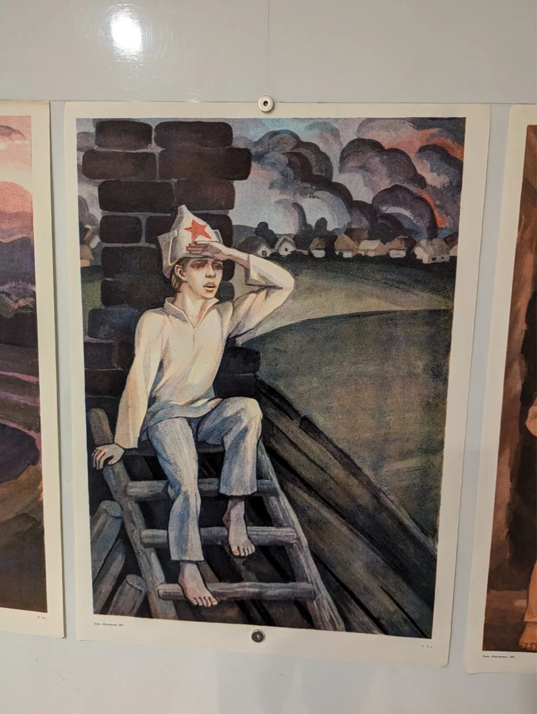 Triple Poster Triptych 1984 - Original Soviet - little scout of enemy positions