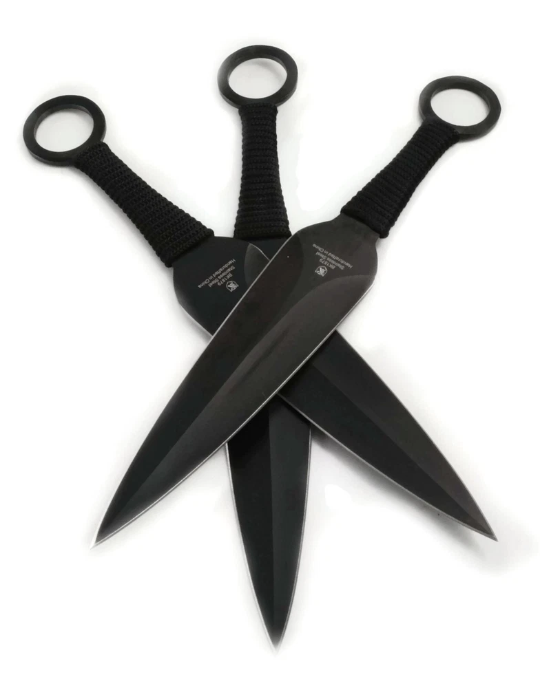 9 inch Kunary Tactical Sharp Edge 3 Piece Throwing Knife Set w/Sheath This set of three, professional extremely sharp throwers are perfectly balanced and amazingly accurate! This three-piece set is constructed from anodized AUS-6 stainless steel with black nylon-wrapped grips and open hole pommels. Features an 9" anodized double-edged, super sharp stainless steel blade for maximum penetration. Included is a custom nylon sheath with boot loop . This throwing knife set features three perfectly balanced throwing knives constructed of single pieces of anodized AUS-6 stainless steel. Contact me with any questions or problems We Offer Our Customers: • Fast shipping! • A 60 day “no questions asked, no hassle” return policy. • A toll-free telephone support number. • Automatic combined shipping discounts. • Quantity discounts available. Contact me for a custom listing. • I am proud to ship to APO/ FPO address whenever possible. Copyright ©2019- 2020 A Creative Edge LLC. All Rights Reserved Use of any pictures, descriptions, titles, code or graphics is expressly prohibited Minimal TO4.02 Powered by SixBit's eCommerce Solution