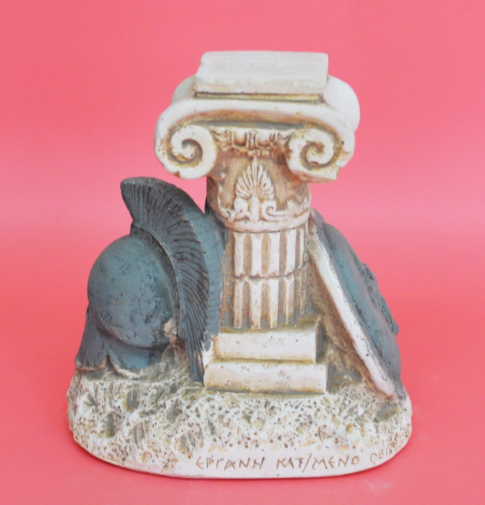 TROJAN WAR WEAPONS This is a mini reproduction of the ancient Greek warriors weapons that were used in the mythical Trojan war battle. One of the most famous Greek myths, balancing between reality and fiction is the Trojan War, infamous all over the world due to Homer’s Iliad and Odyssey. Trojan War still stirs people’s fantasy and artist’s creative imagination. Please be aware that, due to the fact that our products are either individually cast, carved, hand painted and hand finished, there will inevitably be minor variations in size, colour and texture.(B107-1 ) Details: Condition: New, Handmade in Greece Height: 12 cm(4.7 inches) Width: 11 cm(4.3 inches) Weight: 500 g Material: Casting stone ********