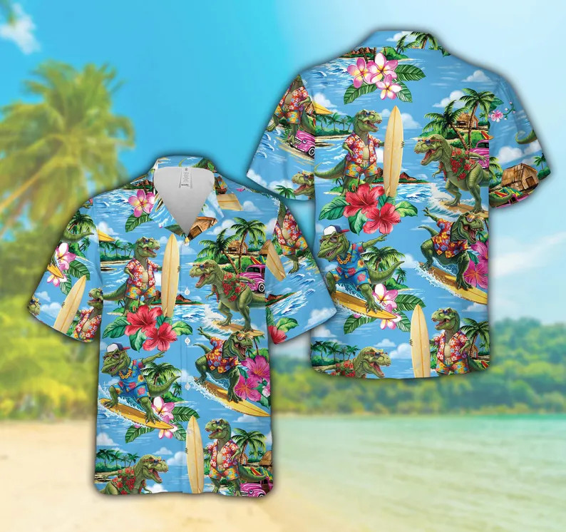 Funny Dinosaur Hawaiian Shirt Men's Beach Party Aloha