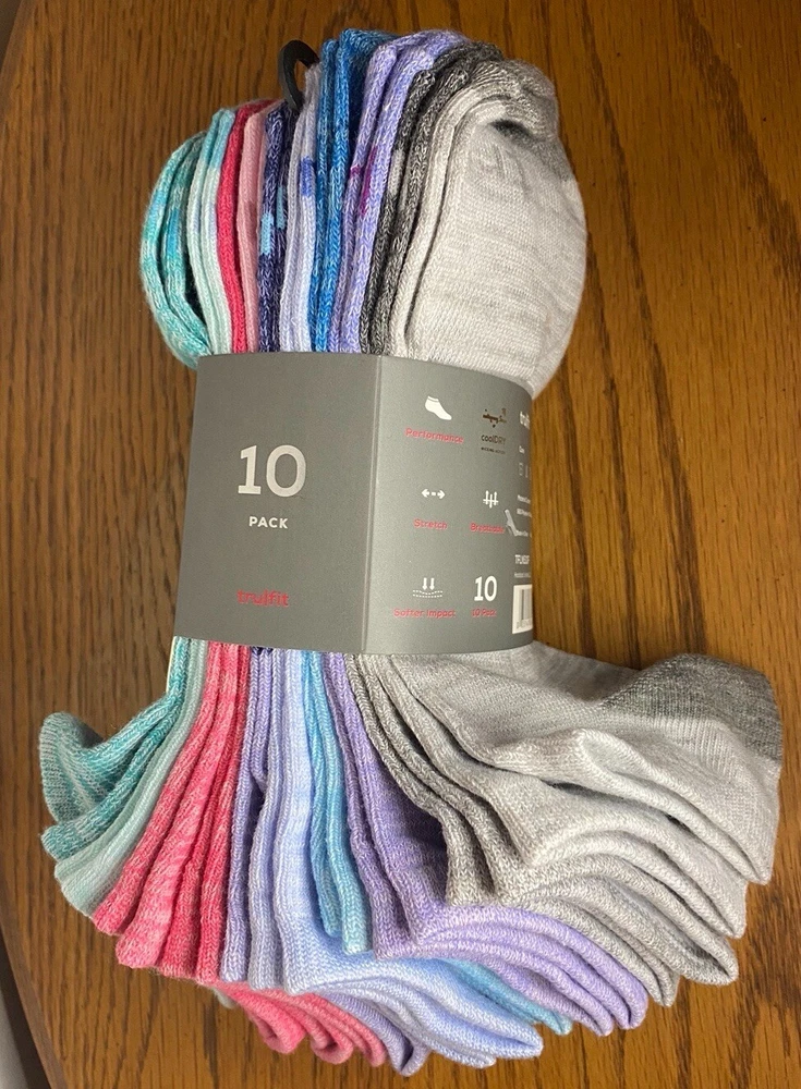 Experience the ultimate comfort and style with Tru Fit No Show Performance Socks, designed specifically for women who value both fashion and function. These socks come in a vibrant multicolor striped pattern, making them a playful addition to any activewear or everyday wardrobe. The full toe and no-show style ensure a snug fit that doesn't compromise on mobility, perfect for activities like gym training and walking. Crafted from a blend of polyester and spandex, these socks are engineered with Cushioned, Lightweight, and Moisture Wicking features to keep your feet cool and dry throughout the day. The breathable material allows for optimal air circulation, while the machine-washable fabric makes for easy care. With 10 pairs in this pack, you can enjoy the convenience of having multiple pairs on hand for any occasion.