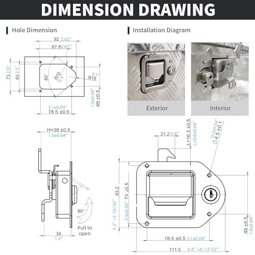 Truck Tool Box Lock Replacement, Standard Flush Mount Paddle Latch, Pull
