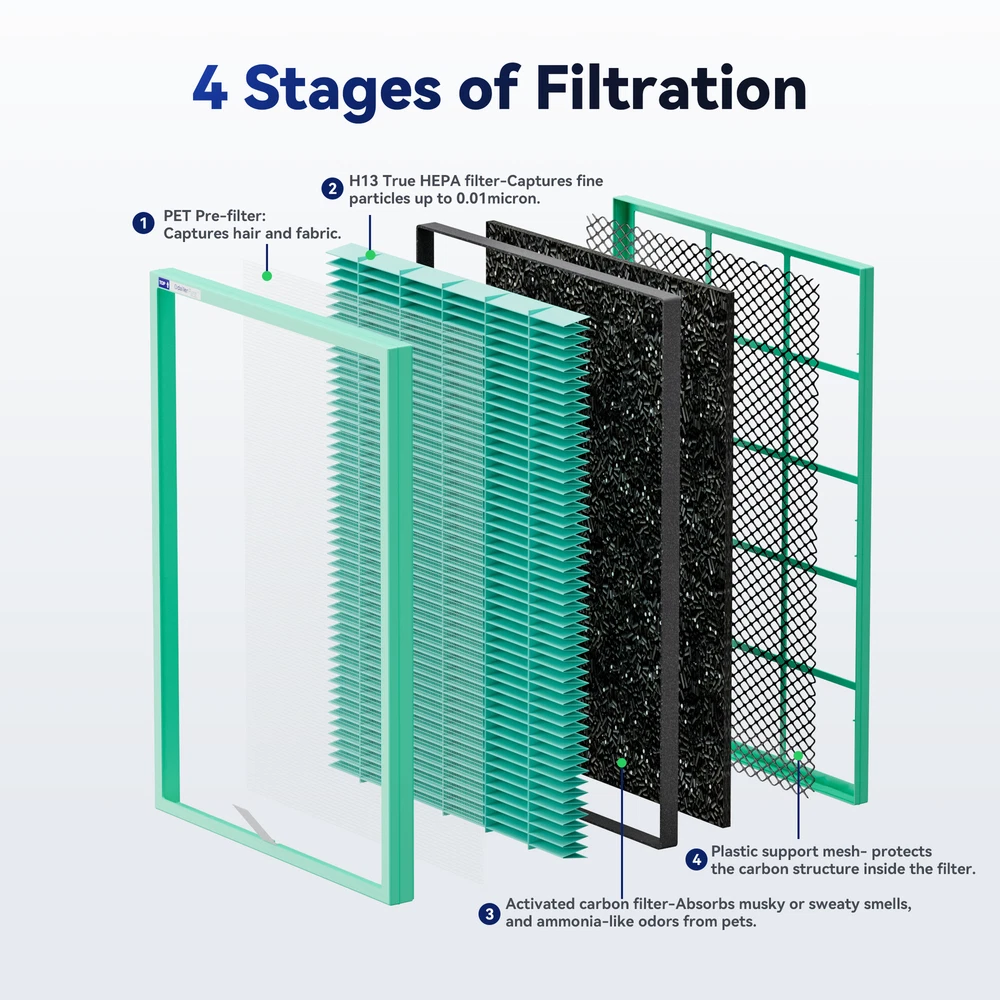 True HEPA Air Purifier Large Room Home Air Cleaner for Allergies Smoker Dust Pet