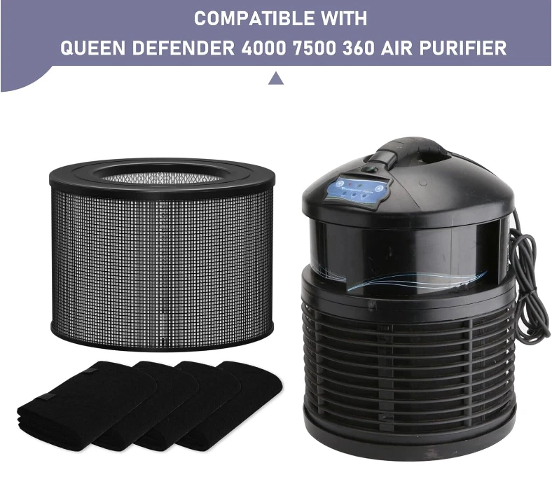 True HEPA Filter Replacement Compatible with Filter Queen Defender 4000 7500 360 Air Cleaner Purifier, High-efficiency True HEPA Filter with 4 Activated Carbon Pre-Filter About The Item: Compatible Models: Our 4000 filter replacement is compatible with filter Queen Defender 4000 7500 360 Air Cleaner Purifier, Please check your air Cleaner purifier carefully to make sure it is the correct filter High-Efficiency HEPA Filter: Adopting True HEPA filter remove 99.97% of airborne dusts PM2.5 down to 0.3 microns in size. Remove large and airborne particles, including dust, common particles, etc Filter Large Particles & Unpleasant Odors: Pre-filter and carbon filter can effectively remove large particles in the air as well as some odors, such as pet odor, smoke, etc, which can effectively protect the carbon layer and HEPA and extend its service life Package Included: 1 x True HEPA Filter and 4 x Activated Carbon Pre-Filter include. which help save money for you. It is recommended to replace every 6-8 months (dependent on air quality and use) so you can enjoy clean and filtered air for a long time Purchase Hassle-Free: We strictly control the purchase of raw materials for the filters and the continuous refinement of the production process. If you have any questions, please feel free to contact us.
