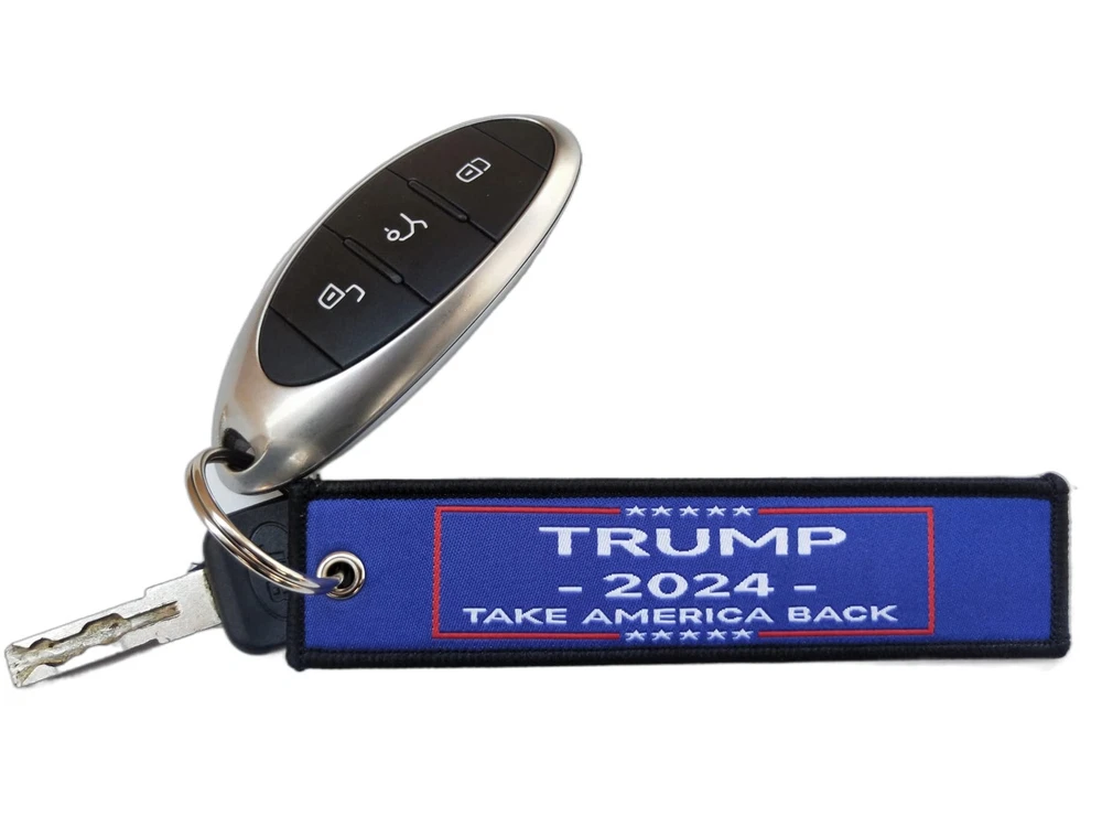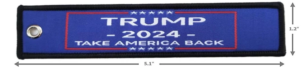 SPECIFICATION: Set of 3 Trump 2024 keychains, 5x1.2 Inch flag with 1.2 inch diameter key ring PREMIUM MATERIAL: 100% Made of high-quality polyester woven labels and high-quality stainless steel guarantees the sturdy little keychains is built to last for a long time even with rigorous usage.