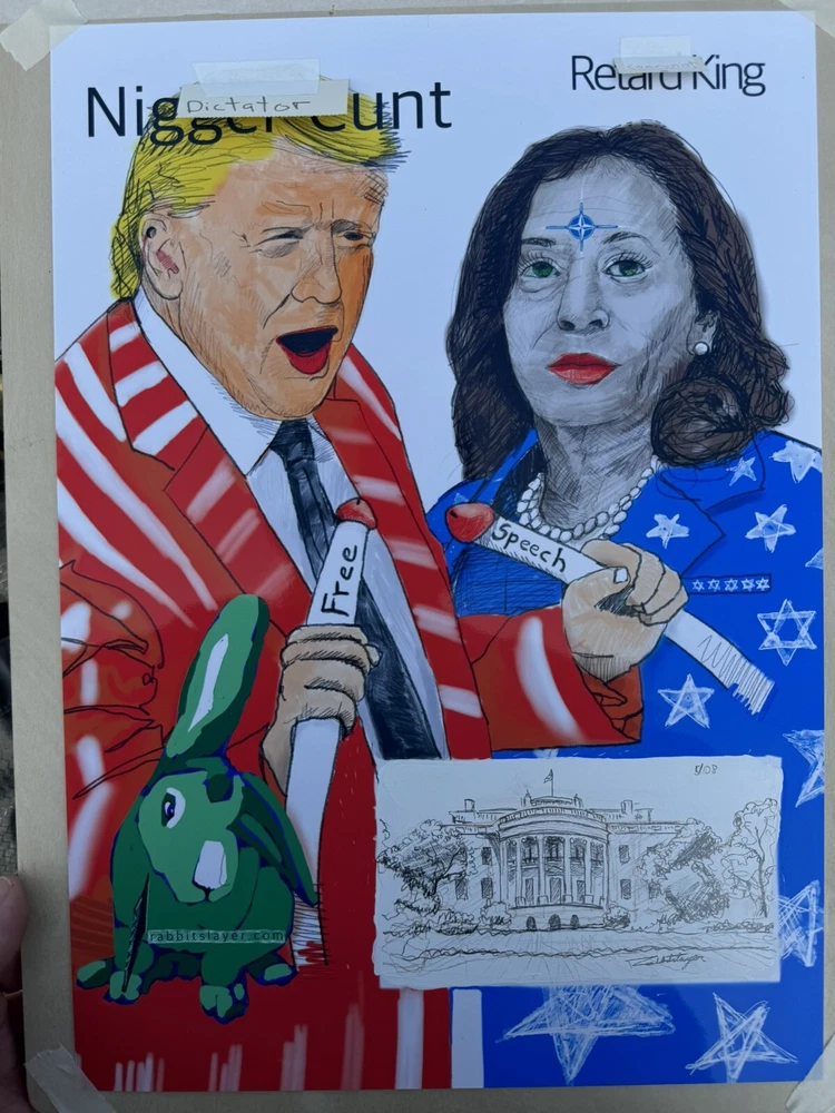 Drawing of The National Archives On A Print Of Trump And Kamala
