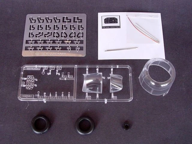 Trumpeter is an internationally recognized injection molded plastic model kit manufacturer that produces unique subjects of excellent detail and quality. The Chance-Vought F4U Corsair was one of the most successful fighters of WWII. It was in production longer than any other US fighter in World War II (1942-1952) with 12,571 built, some of which remained in service as late as 1965. The F4U-4 is a version 2. 01 addition to War birds. This Corsair saw service in the final stages of the Pacific War. The F4U-4 Corsair used the Pratt & Whitney R 2800-18W, later upgraded to the R2800-42W. This engine required more air, creating the need to redesign the nose with the distinctive chin intake. The exhaust system was also re-designed with exhaust outlets both above and below the wings. The other major change was a complete redesign of the cockpit, making it more ergonomic. This included a new cockpit floor, new consoles, re-designed instrument panel, and a simplified seat which consisted of a bucket-type base and a flat armored plate for a back rest. The F4U-4 first saw combat at the battle for Okinawa in 1945. The F4u-4 also participated in combat in Korea. It was the fastest, best dogfighter of the series. The Corsair was definitely the longest-lived of the Navy fighters of WWII, its last combat sortie being in 1971 with El Salvador, and the F4U-4 was considered the 'ultimate' Corsair. Total Parts: 350 pieces. Metal Parts: Aileron & Flap shaft. Photo Etched Parts: Hinges. Film Parts: Instrument panel. Total Sprues: 10 pieces, 3 piece rubber tires and cowling. Paint Schemes: F4U-4 white 13/BuNo 80879 of Capt Kenneth A Walsh, VMF-222,Okinawa, June 1945. This finely detailed plastic model kit requires assembly and painting.