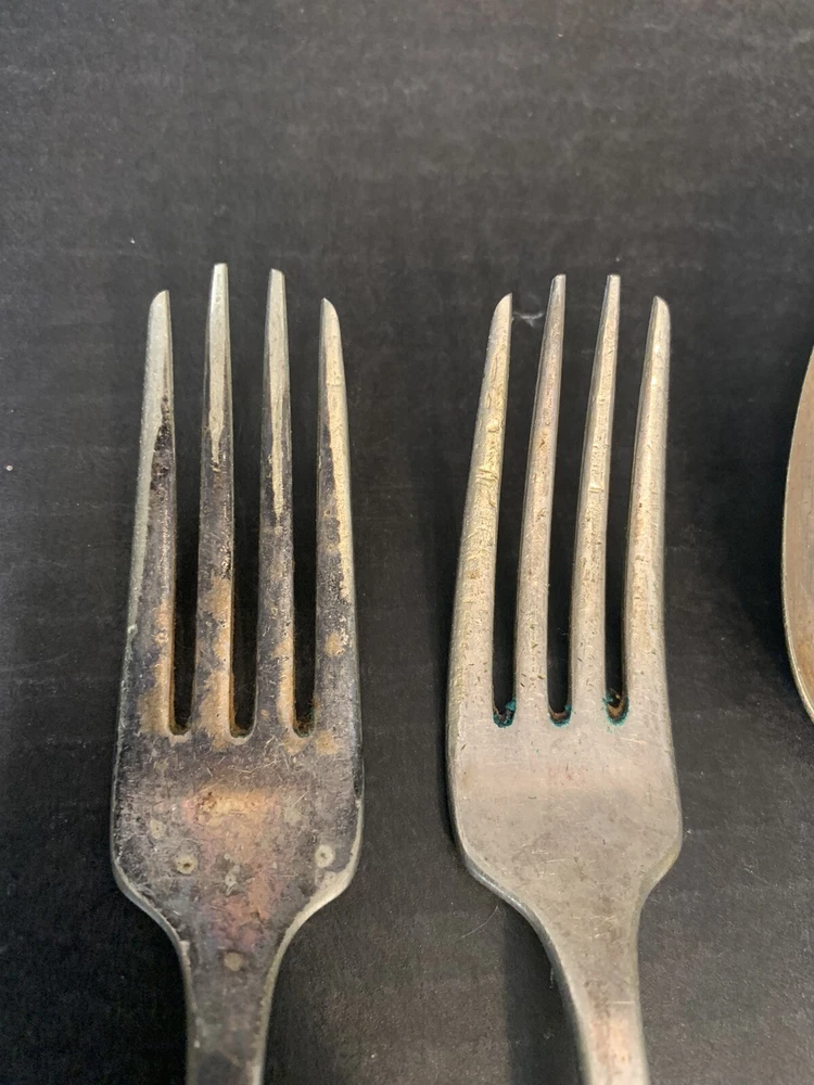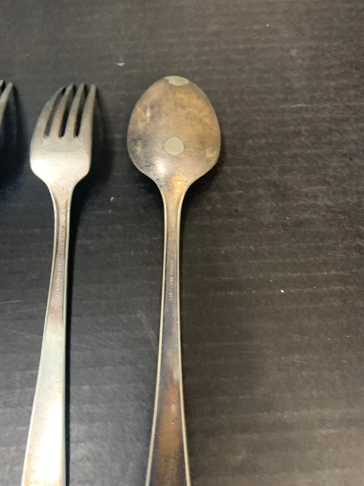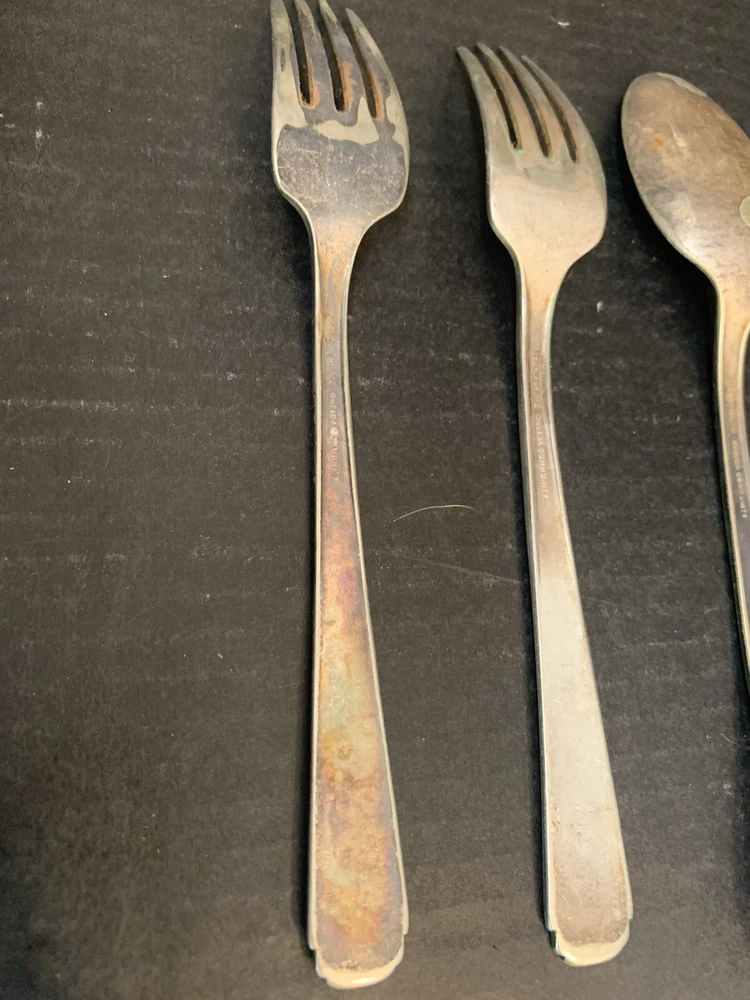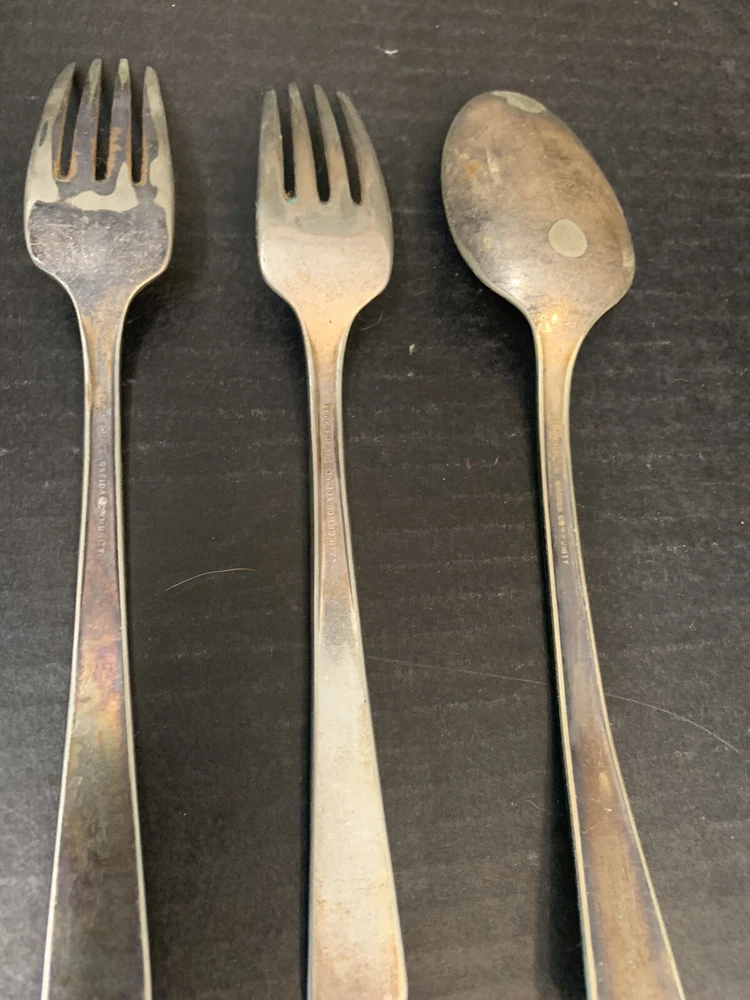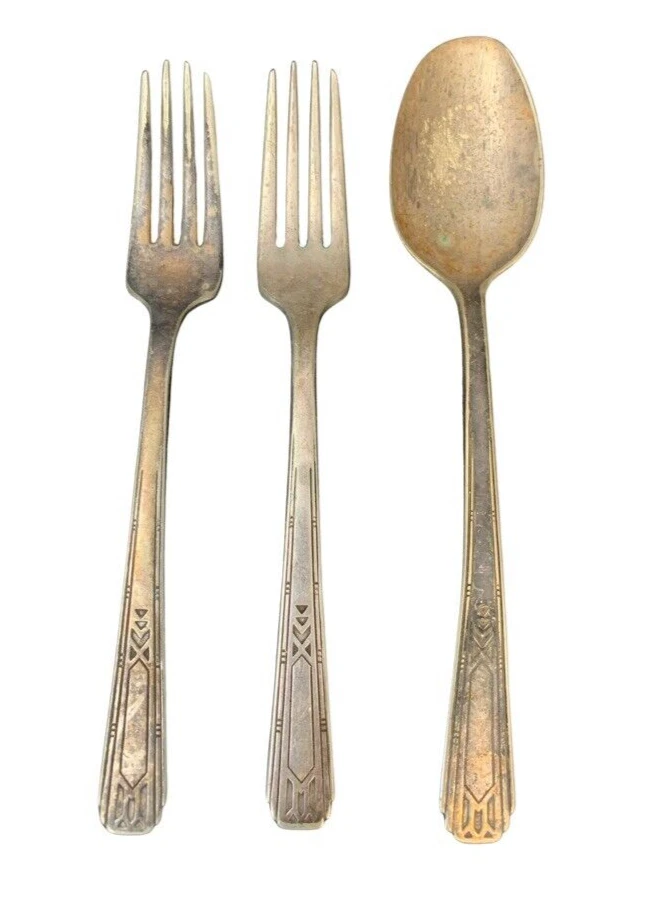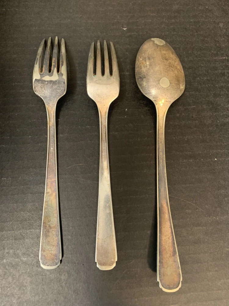 Tudor Plate Community Oneida Silver Plated 2 Forks 1 Serving Tablespoon Spoon = 8 inch, Fork = 7.25 inch Good Condition - some wear from use and tarnish - see pictures for details Please contact me with any questions