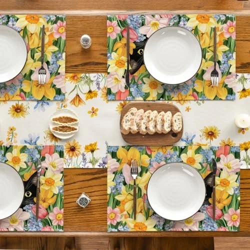Return Policy Fast Delivery Trusted seller Tulip Flowers Cat Spring Placemats Set of 4, 12x18 Inch Seasonal Summer Holiday Table Mats for Party Kitchen Dining Decoration Product Description High Quality Material: Made of 100% spun polyester which is soft, durable and wrinkle-proof. Perfect to protect your dining table from food stains and scratches Bright Dining Table Decor: Add flair to your dining table with colorful placemat. Perfect for family daily use, holidays, receptions, parties and more. Sure to impress your guests and create a WOW feeling Durable and Stylish: Hemmed and reinforced edges can help to keep placemats from Fraying. Vibrant patterns increases charm in placemats and blow a fresh breeze into your dinning room, perfect for indoor and outdoor use Easy to Clean: Machine wash and lay the placemat flat to dry. Stays the same and as new after every wash. Material: 100% Polyester, no shrink, no color ran. Imported, Country of origin: China Designed with You in Mind: place mats are designed by professionals. Vibrant color and unique pattern print offers you creative and unique idea to decorate home Shipping Returns Payment Shipping Shipping is FREE to all addresses other than APO/PO boxes in the lower 48 states. All our stock ships from US-based warehouses. Shipped via USPS or UPS (depending on location and package weight) Unless stated otherwise, all orders will ship within 24-72 hours of your payment being processed. Check our feedback to see the great reviews of FAST shipping we offer. Returns Seller does not accept returns Payment We currently accept payment via eBay managed payments only. Once payment is cleared, we will dispatch your shipment within 1-3 business days. Please refer to the "Shipping" tab for more information regarding shipping speed to your destination.