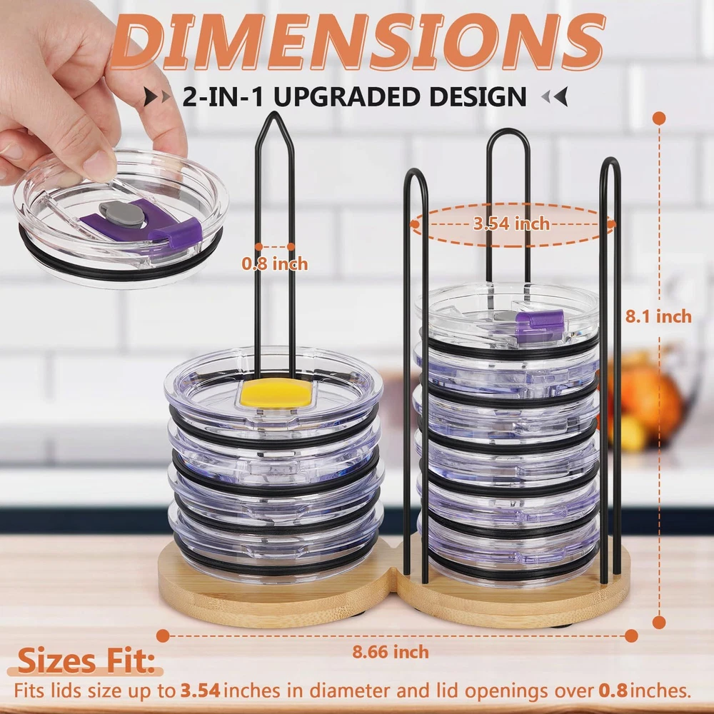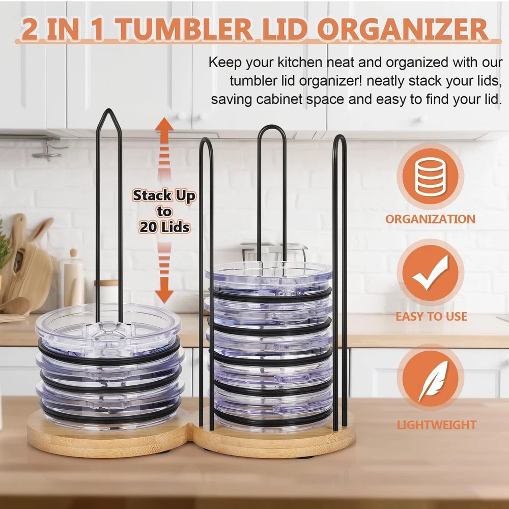 Tumbler Lid Organizer, 2 IN 1 Stacking Tumbler Lid Holder Vertical Storage for Up to 20 Lids, Space-Saving Design Cup Lid Organizer Storage Rack for Kitchen Cabinet and Countertop Organization 2 IN 1 Tumbler Lid Stacker: Innovatively Designed as a 2 in 1 cup lid holder storage, capable of accommodating up to 20 lids of various tumbler lid types, maximizing your need for kitchen and countertop organization space. Storage Space Maximization: The vertical stacking design of this tumbler lid organizer minimizes storage space usage, making lids easily accessible in your cabinet, it is a great space-saving ideal for your small kitchen, apartments, or any space where efficiency is key. Premium Natural Material: Our cup lid organizer is crafted from natural bamboo and sturdy iron, lightweight, resistant to deformation, and durable ensuring long-time use. The lid storage organizer is a friendly option that's perfect for your home needs. Design with slip-proof on the base of our cup lid storage organizer to stand firm, preventing any unwanted sliding or tipping. Home Organization Must Have: Say goodbye to kitchen lid clutter and countertop organization, our tumbler lid organizer is the best solution for organizing lids of cups. Secures your tumbler lids precisely, keeps your cabinets organized, and allows for quick retrieval of the needed within seconds. Detachable Design: Features a detachable design of our stacking cup lid holders for easy storage and use, providing your home with a tidy. Easy to install, simply insert the stick of the lid organizer holder firmly into the round hole position of the base and adjust as needed. SHIPPING - We offer FREE shipping on all orders! - We ship within 3 business days of payment, usually sooner - We use a selection of shipping services such as UPS, FedEx, USPS etc - We only ship to the lower 48 states, no APO/FPO addresses or PO Boxes allowed International buyers – please note: Import duties, taxes, and charges aren't included in the item price or postage cost. These charges are the buyer's responsibility. - Please check with your country's customs office to determine what these additional costs will be prior to bidding or buying. - We have confidence in our products, but if you are not fully satisfied please contact us within 30 days of purchase and you will get full refund. * Order Cancellation Policy ** You can return a product for up to 30 days from the date you purchased it. 1. The seller reserves the right to cancel the special case only due to eBay cancellation fee. 2. The decision of seller is the final. 3. The seller will respond to the cancellation request within 2 business days. Please wait for the result of cancellation. 4. In case the cancellation is not completed by some reasons, the buyer can follow the options below to get the refund. 4.1 The buyer can reject the item when it arrives. 4.2 The buyer can send the item back to the seller within 30 days If the buyer receives item (USA Shipment ONLY). The seller will provide the FREE return label to the buyer when the buyer opens " Return Item" case on eBay by using the reason as "Change my mind" ONLY. 5. When buyer has placed the order. The order will be processed and completed by automatic warehouse system within 5 minutes. In case that buyer sends the cancellation request after 5 minutes of placing the order, the request will be rejected. **Sending direct message to cancel the order is not allowed for every case.* Return Policy For the return case - If buyer would like to return the items for refund or replacement, please CONTACT SELLER to receive the free return label from seller. The refund or replacement will be processed with the tracking number of return label which is provided by seller only. The other ways of return which are not approved by seller will not be processed for the refund or replacement. CUSTOMER SERVICE - We try our best to make sure every customer is completely satisfied. - If there's a problem, feel free to message us! - We're happy to help.