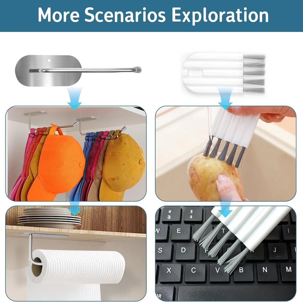 Tumbler Lid Organizer, Saving Space Efficient 2 Hook & 2 Brush KIT Product Details Material: Stainless Steel Color: 2 Hook & 2 Brush KIT Special Feature: Rust Resistant Product Dimensions: 2.75"D x 7"W x 2"H Number of Shelves: 1 Perfect Space-Saving Solution: Tumbler Lid Organizer Revolutionize your tumbler lid storage. Bid farewell to cluttered countertops at least 50% space savings. Versatility meets efficiency with our Tumbler Lid Organizer. Innovative Design :Designed to accommodate various lid sizes and brands, the T-shaped hooks ensure optimal Storage for lids with straw holes over 0.35 inches. Short hooks hold up to 8 lids, while long hooks store up to 16 lids.The hook is made of high-quality stainless steel material, which does not rust when exposed to water. The surface is smooth and suitable for sliding the cup cover. The tail is equipped with a silicone anti slip pad to prevent the cup cover from falling off. VS Other:Included cup brush efficiently cleans every nook and cranny of your tumbler lids, making tidying up a breeze.Cup brush uses high-quality ABS bristles, which are strong and resilient and suitable for cups of various materials. The cup brush can also be bent and folded, making it easy to enter the gaps of the cup and remove residual stains from the cup,Making tidying up a breeze. 2 installations:Tumbler organizer for kitchen cabinets offers two optional installation options, ranging from 3M adhesive or screw drilling, for easy installation on smooth or rough surfaces. Equipped with tape, screws, expansion screws, and nuts to ensure safe installation according to your needs. Multi scenario application: Not only Tumbler organizer for kitchen cabinets, but also for horizontal installation under kitchen cabinets for easy access, or vertical installation on ceramic tile walls or wooden supports in kitchens, bedrooms, bathrooms. tumbler lid holder for cups can store both water cup lids and hats, kitchen tissues, etc Gifts and Kitchen Helpers:Don't worry about the tumbler lid storage at home anymore. It's a small gift suitable for giving to your partner, parents, or friends. Not only can tumbler lid holder help your family and friends solve cup storage and cleaning problems. If you have any questions, please provide a 24-hour friendly reply and feel free to email us at any time.