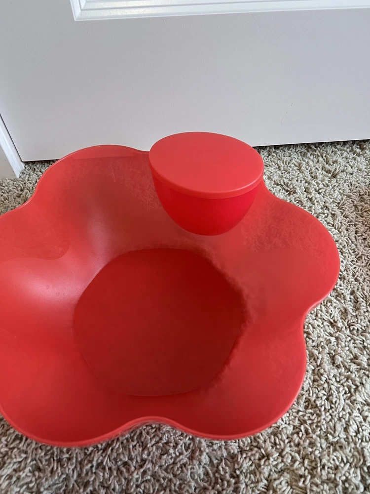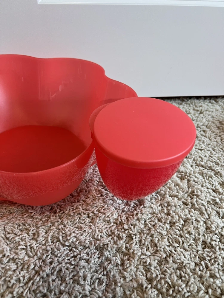 gtin13:Does not applyUPC:Does not applySet Includes:BowlTheme:PartyOccasion:All OccasionsStyle:ModernMaterial:PlasticCountry/Region of Manufacture:United StatesPattern:FlowerBrand:TupperwareOriginal/Reproduction:OriginalTime Period Manufactured:2020-NowColor:RedNumber of Place Settings:naType:Serving BowlShape:FlowerFinish:Matte