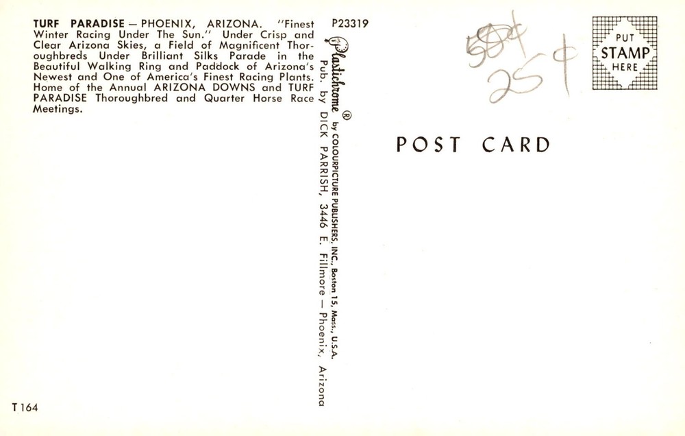 Close Finish at Hialeah Race Track, Miami, FL, 1954 Postcard