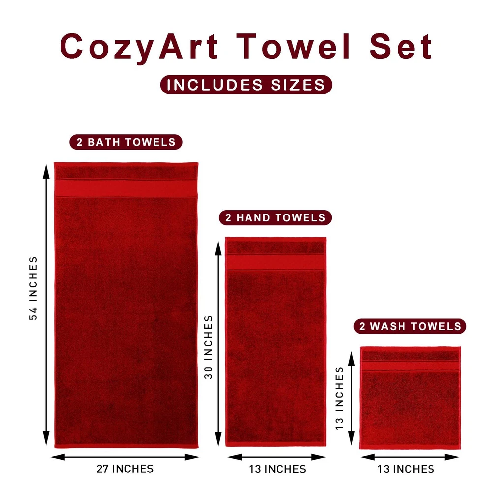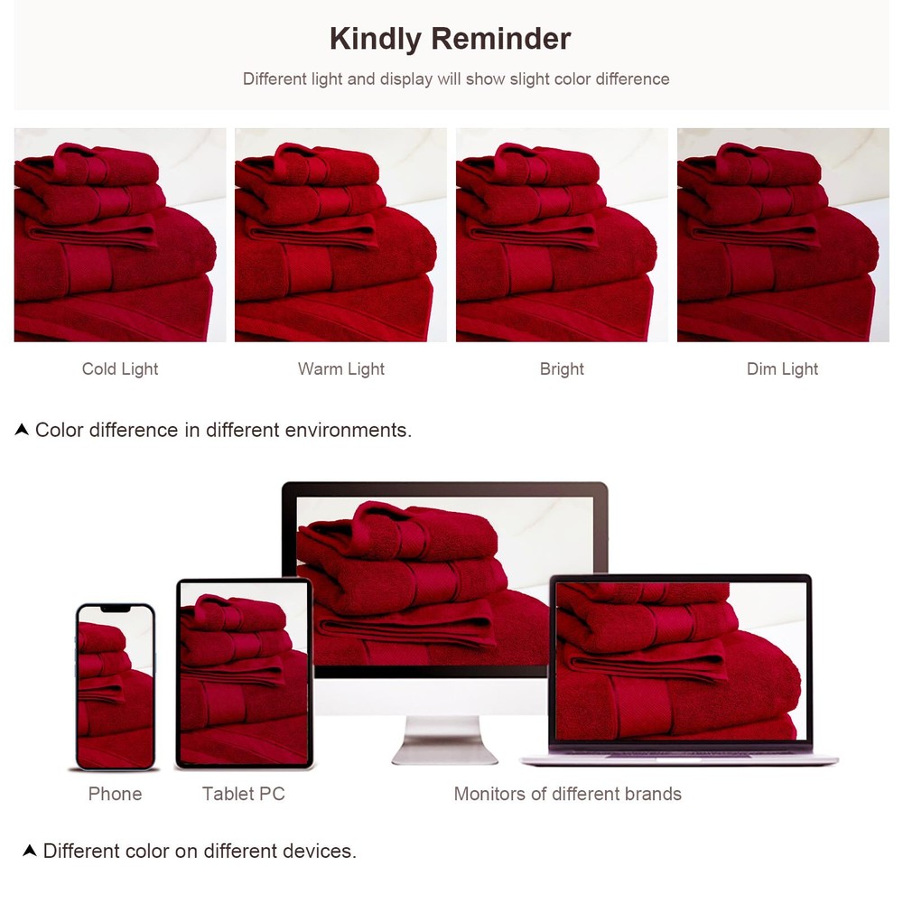 Red Bath Towel Set 6 Piece, Luxury 100% Turkish Cotton 650GSM Hotel Quality, Soft, Absorbent,Towel Sets for Bathroom | 2 Bath Towels 2 Hand Towels 2 Washcloths 100% Pure Cotton Towel Sets: The 100% Cotton bath towel sets is made of soft and durable ring spun terry, that is durable, softness, and quick drying. 650 gsm which provides extra absorbency. And used a zig zag stitch (closed overlock), which is a more complicated and firmer stitching method than double-stitched hem, which enhances the durability of the towel. Ideal choice for your life. Towels Set Includes: 6 Piece Towels. 2 Bath Towels(27 x 54 inches), 2 Hand Towels(13 x 30 inches) and 2 Washcloths(13 x 13 inches). These pure cotton towels set come in a variety of beautiful colors to complement with any home, dorm or hotel bathroom. EASY CARE: Machine Washable. Wash these bath towels sets separately as it will help in avoiding any kind of lint transfer onto your clothes. After washing you will get soft fluffy and comfortable towels. It is normal that a slight color fade or small fluff, so please clean it for the first time and wash the towels separately according to the washing instructions. Enjoy Life:Pamper yourself with Luxurious and comfortable bath towels made of 100% pure cotton. Each towel provides optimal coverage, absorbency. You can use these towels for body works as beach bathroom decor, bathroom decor sets accessories, etc. in your bathroom, hotel & spa, kitchen, gym, and anywhere you need. Satisfaction Assured: If you are not completely satisfied with our towel set, our customer service team would be happy to entertain all your concerns and provide best solution for the scenario. Please feel free to reach out to us! Bath Towels Set 6 Piece, Luxury 100% Turkish Cotton 650GSM Hotel Quality, Soft, Absorbent,Towel Sets for Bathroom | 2 Bath Towels 2 Hand Towels 2 Washcloths Shipping We offer FREE shipping on all orders! We ship within Three business days of payment, usually sooner. We use a selection of shipping services such as UPS, FedEx, USPS etc. We only ship to the lower 48 states, no APO/FPO addresses or PO Boxes allowed. Local pickups and combined shipping options are not provided at this time. Return You can return a product for up to 30 days from the date you purchased it. Any product you return must be in the same condition you received it and in the original packaging. Please keep the receipt. Payment We accept payment by any of the following methods: PayPal Please pay as soon as possible after winning an auction, as that will allow us to post your item to you sooner! Feedback Customer satisfaction is very important to us. If you have any problem with your order, please contact us and we will do our best to make you satisfied. Contact Us If you have any queries, please contact us via ebay. We usually respond within 24 hours on weekdays. Please visit our eBay store to check out other items for sale! Thank you for shopping at our store.