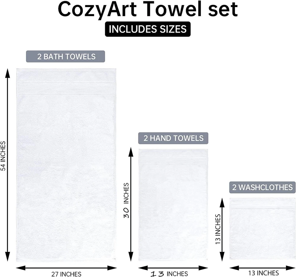 White Bath Towel Sets, Premium Turkish Cotton Large Towel Set for Bathroom, 650 GSM Luxury Bathroom Sets Pcs with 2 Bath Towels, 2 Hand Towels, 2 Washcloths, Ultra Soft and Water Absorbent Extreme Durable & Excellent Quality: This towel sets are made of 100% Turkish cotton, woven to 650GSM, so it is ultra-soft and durable. It comes with a double stitch hem for enhanced durability & strength. Please Enjoy the ultra-soft plush, fluffy premium bath towels. The Hotel & Spa quality towels for bathroom decor sets accessories to provide the home a luxurious & elegant bathing design. Absorbency & Quickly Dry: With zero-twist construction --a sophisticated spinning process, our bath towels could quickly dry, dry 20-25% faster compared to a conventional towel which makes the bath towel set ultra-absorbent! They are perfect bath clothes for adults, kids, and even toddlers and babies who enjoy huge, soft embraces. Multi-usage: You can use these towels for bath as beach bathroom decor, bathroom decor sets accessories, etc. in your bathroom, hotel & spa, kitchen, gym, and anywhere you need. Care Notice:Machine wash on gentle cycle. These towels are easy to care for and dry quickly for everyday use. Minor fading or lint is normal for natural materials. For best results, soak in water with vinegar or baking soda before washing to lock in color and reduce lint. Avoid high heat and fabric softeners—they can cause excess lint and reduce absorbency. Package Includes: 2 extra-large bath towels (27 inches x 54 inches), 2 Hand Towels (13 inches x 30 inches), 2 Washcloths (13 inches x 13 inches). We are here to provide satisfaction to our customers. Premium cotton towel set Shipping We offer FREE shipping on all orders! We ship within Three business days of payment, usually sooner. We use a selection of shipping services such as UPS, FedEx, USPS etc. We only ship to the lower 48 states, no APO/FPO addresses or PO Boxes allowed. Local pickups and combined shipping options are not provided at this time. Return You can return a product for up to 30 days from the date you purchased it. Any product you return must be in the same condition you received it and in the original packaging. Please keep the receipt. Payment We accept payment by any of the following methods: PayPal Please pay as soon as possible after winning an auction, as that will allow us to post your item to you sooner! Feedback Customer satisfaction is very important to us. If you have any problem with your order, please contact us and we will do our best to make you satisfied. Contact Us If you have any queries, please contact us via ebay. We usually respond within 24 hours on weekdays. Please visit our eBay store to check out other items for sale! Thank you for shopping at our store.