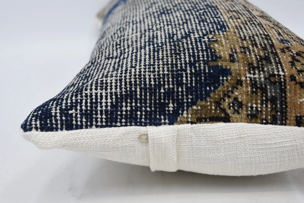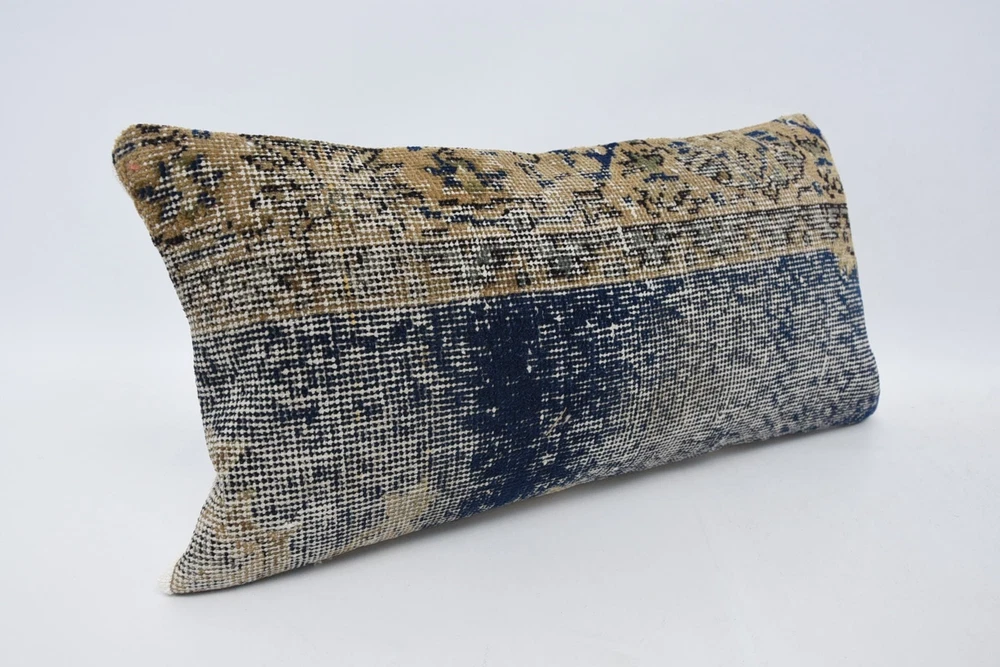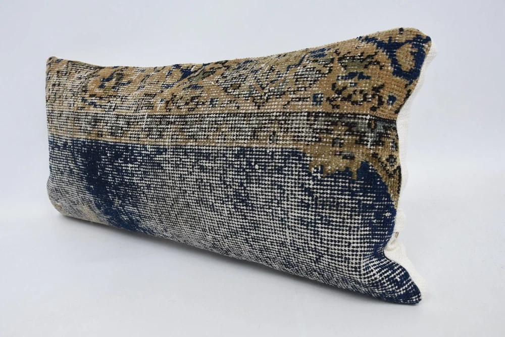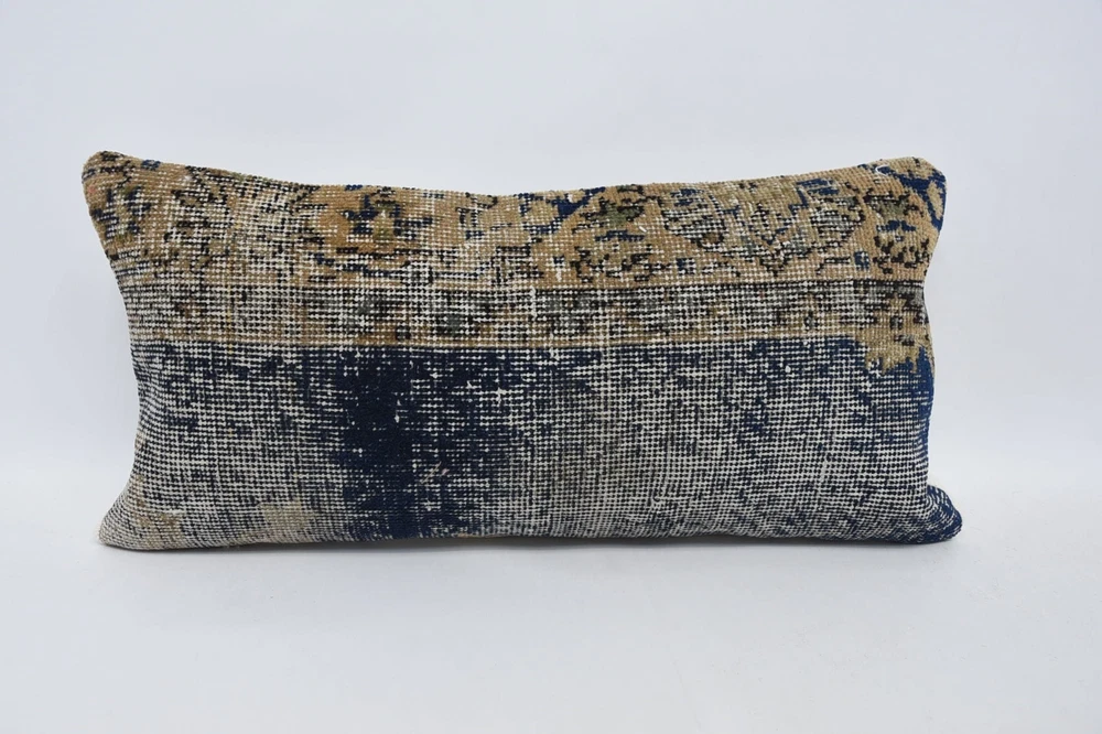 Turkish Kilim Pillow, Designer Pillows, 12"x24" Blue Pillow Covers