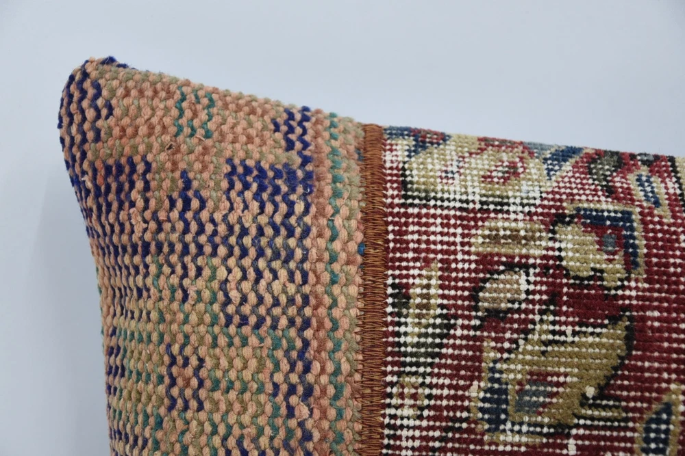 Turkish Kilim Pillow, Designer Pillows, 12"x24" Red Pillow, Antique Pillows