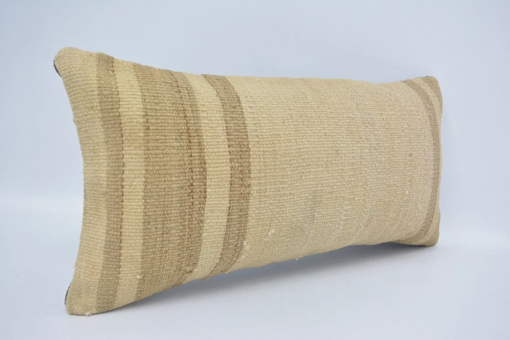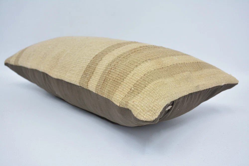 Turkish Pillow, Pillow for Couch, 12"x24" Beige Cushion Case, Designer Pillows