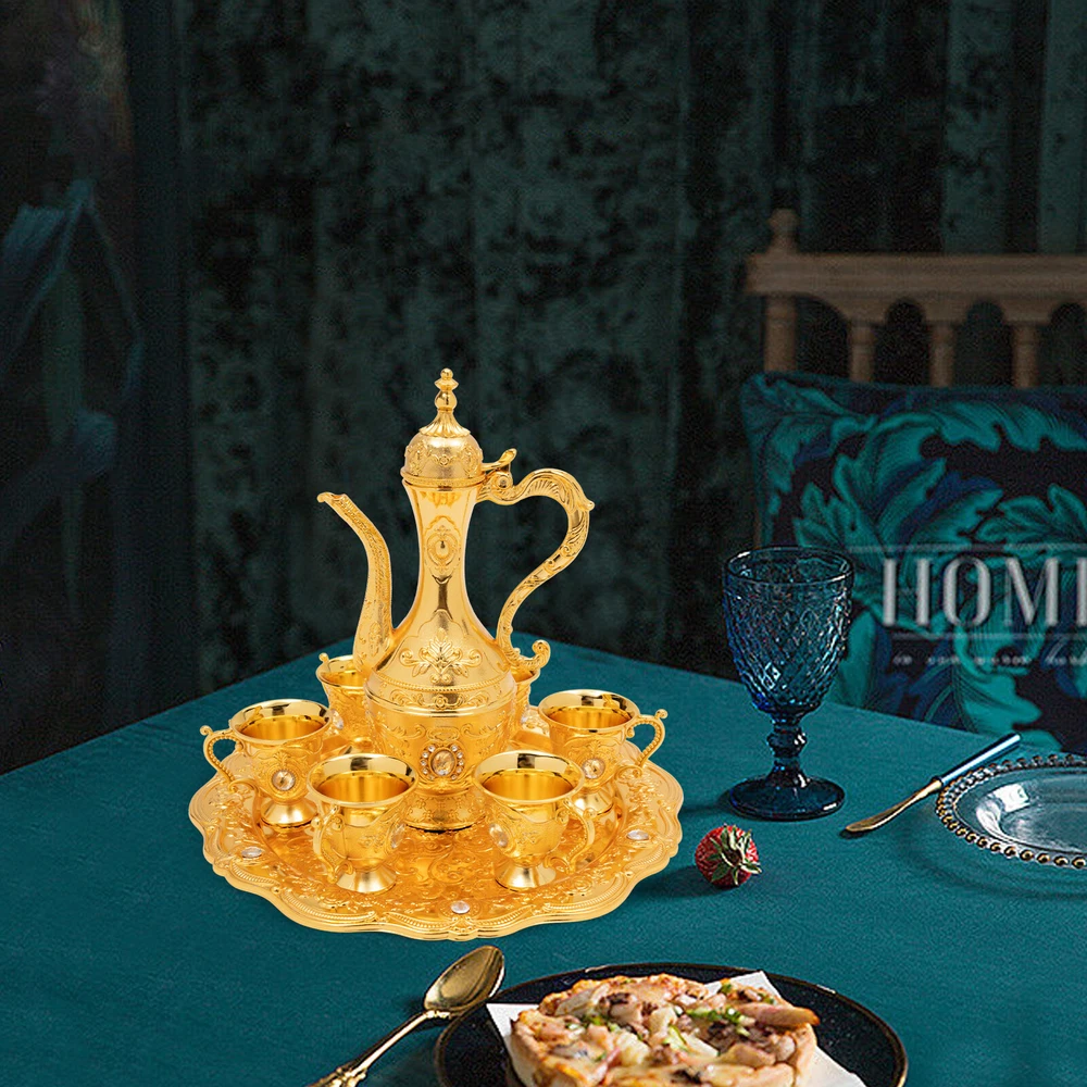 Specification Material: Zinc Alloy Process: Die-casting, Polishing, Plating Style: Antique, Turkish Number of Tea Cups: 6 Dishwasher Safe: No Teapot Capacity: 250ml/8.45Oz Each Tea Cup Capacity: 30ml/1.01Oz Assembly Required: No Tea Cup Size (D*H):5*6cm/1.97*2.36in Pot Size(L*H): 12.9*22cm/5.08*8.66in Tray Diameter: 24.5cm/9.65in Package Size: 26*26*9cm/10.24*10.24*3.54in Gross Weight: 0.9kg/1.98lbs Net Weight: 0.84kg/1.85lbs Package Included 1*Tray 1*Teapot 6*Teacups Description This Turkish tea set is unique, exquisitely designed, and crafted. It includes a teapot, 6 teacups, and a tea tray, and each component has been carefully selected and polished to ensure its quality and durability. The teapot has a classic and elegant shape with beautiful carvings, ad Turkish Tea Set Vintage Coffee Set W/ Pot +6 Cups for Wedding Tea Serving Set Specification Material: Zinc Alloy Process: Die-casting, Polishing, Plating Style: Antique, Turkish Number of Tea Cups: 6 Dishwasher Safe: No Teapot Capacity: 250ml/8.45Oz Each Tea Cup Capacity: 30ml/1.01Oz Assembly Required: No Tea Cup Size (D*H):5*6cm/1.97*2.36in Pot Size(L*H): 12.9*22cm/5.08*8.66in Tray Diameter: 24.5cm/9.65in Package Size: 26*26*9cm/10.24*10.24*3.54in Gross Weight: 0.9kg/1.98lbs Net Weight: 0.84kg/1.85lbs Package Included 1*Tray 1*Teapot 6*Teacups Description This Turkish tea set is unique, exquisitely designed, and crafted. It includes a teapot, 6 teacups, and a tea tray, and each component has been carefully selected and polished to ensure its quality and durability. The teapot has a classic and elegant shape with beautiful carvings, adding an artistic touch to tea making. Let's sip tea from these carefully crafted teacups to feel the beauty of time and space and experience a journey through history. Key Features Sturdy and Durable: The products are made of high-quality zinc alloy and through the process of die-casting, polishing, electroplating, and dripping glue, with corrosion resistance, high hardness, high smoothness performance, and long service life. Large Capacity: The large capacity teapot (8.45Oz) and teacup (each 1.01Oz) can meet your needs for drinking with your family or friends. Multi-functional: This product can not only be used as a tea set, you can use it as a wine awakener, wine decanter, wine dispenser, and so on according to your preferences. It also can hold liquids such as tea, coffee, and wine. Convenient to Use: The design of the press to open the pot makes it easier for you to hold it, and the rounded edge treatment on the surface of the product makes it not easy for you to cut your hand in the process of using it. Easy to Clean: The polished smooth surface and simple construction make the product easy to clean with water. Enhancement of Taste: The exquisite pattern is a wonderful blend of art and emotion, which is your high-end luxury interior decoration product. It is a great blend of three elements: European palatial atmosphere, exquisite carvings, and bright warm colors, bringing you an unusual visual enjoyment. With this exquisite tea set, you can experience the rich traditions of Turkish tea culture in the comfort of your own home. Direct Use: You can use the product directly after receiving it without assembling it, thus saving you time and effort. An Ideal Gift: This product has a beautiful appearance, it is an ideal gift for weddings, engagements, housewarming celebrations, and anniversaries, it can bring blessings to your family and friends, tea lovers, and history enthusiasts. Details Eagle Beak Spout: The spout is designed like a delicate eagle's beak with beautifully rounded curves and an ergonomic design for easy pouring. Anti-break Lid : The newly upgraded break-resistant design provides you with higher quality assurance and allows you to replace the cover as needed. Delicate Carving: This product adopts the combination of traditional Chinese carving and European carving art, with the relief symbolizing happiness and auspiciousness, bringing good luck to your family. Delicate Tray: The bottom of the tray is beautifully textured with a large embossed floral pattern. The entire tray has a soft curved edge, just like a blooming flower. It can not only place teapots and teacups to decorate the home environment but can also place fruits and other items separately, which is practical. Handle: Its shape is sinuous, just like a dragon flying in the sky. It is not only beautiful but also easy to grip. Application This product is suitable for tea steeping and enjoyment in homes, restaurants, hotels, offices, tea art galleries, and other occasions. Notes After receiving the product, you are required to thoroughly clean the inside of the teapot and teacup before use. For dust cleaning, please use a soft wool brush or a hair duster to sweep gently and then wash with clean water, and do not wipe with a rough towel. For oil cleaning, please use a fine silk cloth or cotton cloth dipped in gasoline or oil cleaning agent to gently wipe wet, clean water wash. Please be careful in daily life to minimize the knock or indirect man-made damage, prevent sharp objects such as nails, knives, or blunt objects from scratching and collision, and avoid using liquid cleaners with chemicals. Please do not put it into the dishwasher to wash, so as not to damage the product. Please allow the slight color difference caused by the shooting light and 1-3cm error due to manual measurement, and make sure you do not mind before ordering. Payment Delivery details Terms of sales About us Contact us Payment We accept ebay payment 。 Fees such as import duties, taxes are not included in the item price or shipping costs. These charges are the buyer's responsibility. Delivery details Shipping: 2-9 working days to: USA Terms of sales We maintain high standards of excellence and strive for hundred percent customer satisfaction. Feedback is very important to us. We hope that you contact us immediately before you give neutral or negative feed