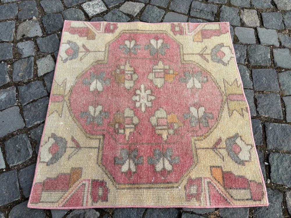 An old (approximately 45-60 years old) hand knotted / hand woven Turkish rug from the Middle Anatolian Region and made of genuine, high quality wool, in natural colors. Our distinguished Antiques and Vintage rugs, each with its own unique story, have been carefully selected from every corner of Turkey. RUG DETAILS * One-of-a-kind vintage rug * Dimensions: 2,5 x 2,5 ft = 31 x 31 inc = 79 x 79 cm * Low pile: approximately 0.2"(0.5 cm) * Dyed with natural dyes * Product code : AA 1305 SHIPPING * Free shipping on all items. * Usually shipped via FedEx or UPS. * Item will be ready for shipment within * Estimated delivery 3-5 business days 1-3 business days with a tracking number. All of our rugs have been professionally cleaned and ready to ship before being listed. These unique vintage rugs have normal wear related to their age. We believe this adds to the authenticity of these hand-woven beauties. We inspect all rugs carefully before Shipping, but in the unlikely event that due to our fault, the goods are not fit for purpose, damaged/defective, or we ship the wrong item, we will issue a 100% refund. We are a team of experienced professionals who are dedicated to ensuring your items arrive safely. Please note that our photos accurately represent the colors of the rug, however it may look different in the light in your home or against different colored floors. We are so excited to share the beauty and art of rugs with you and to see how your personal spaces transform! I do my best to build a great experience in online rug shopping for you, just look at the reviews. Please feel free to write me over conversation if you have any questions about the rug or price. I will be happy to answer to you. Thank you, Yusuf.