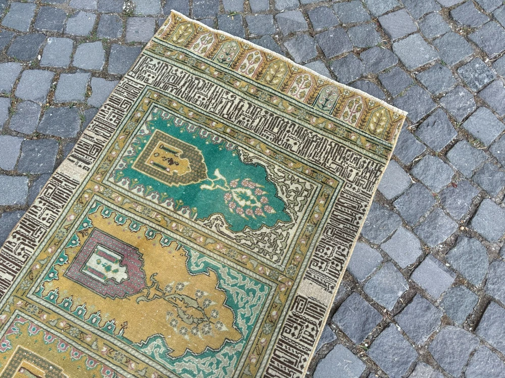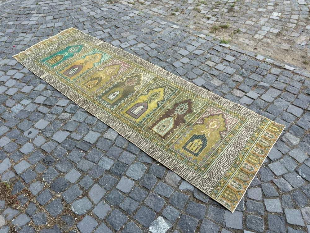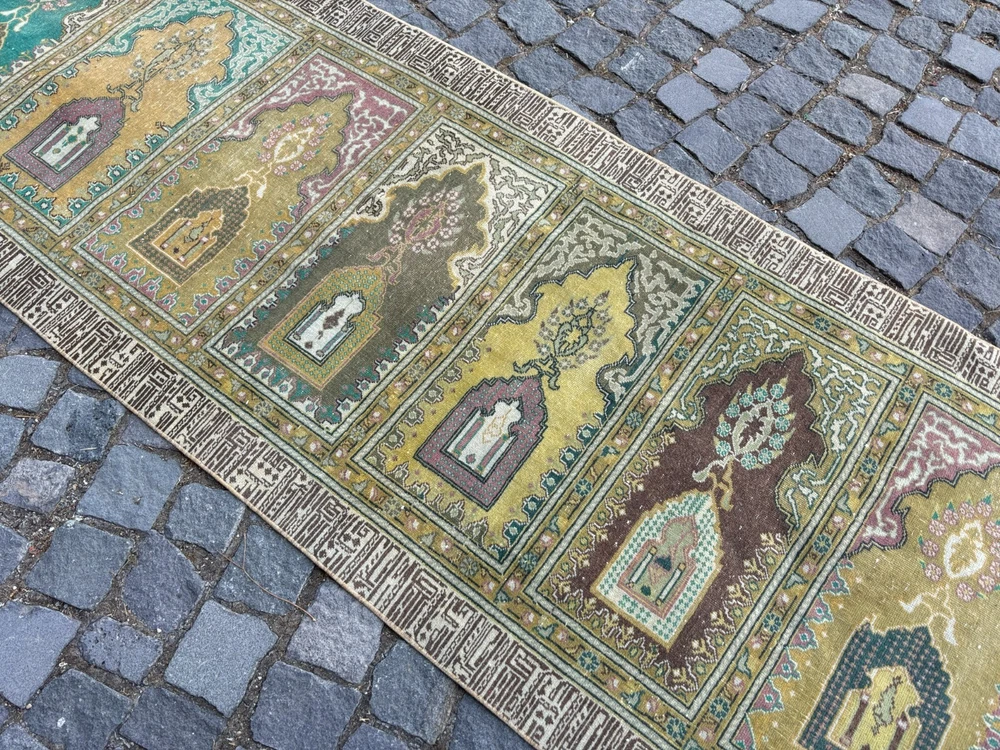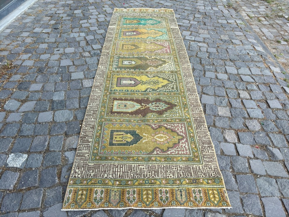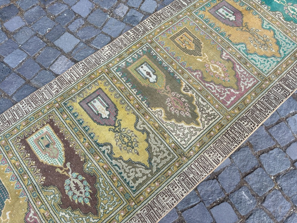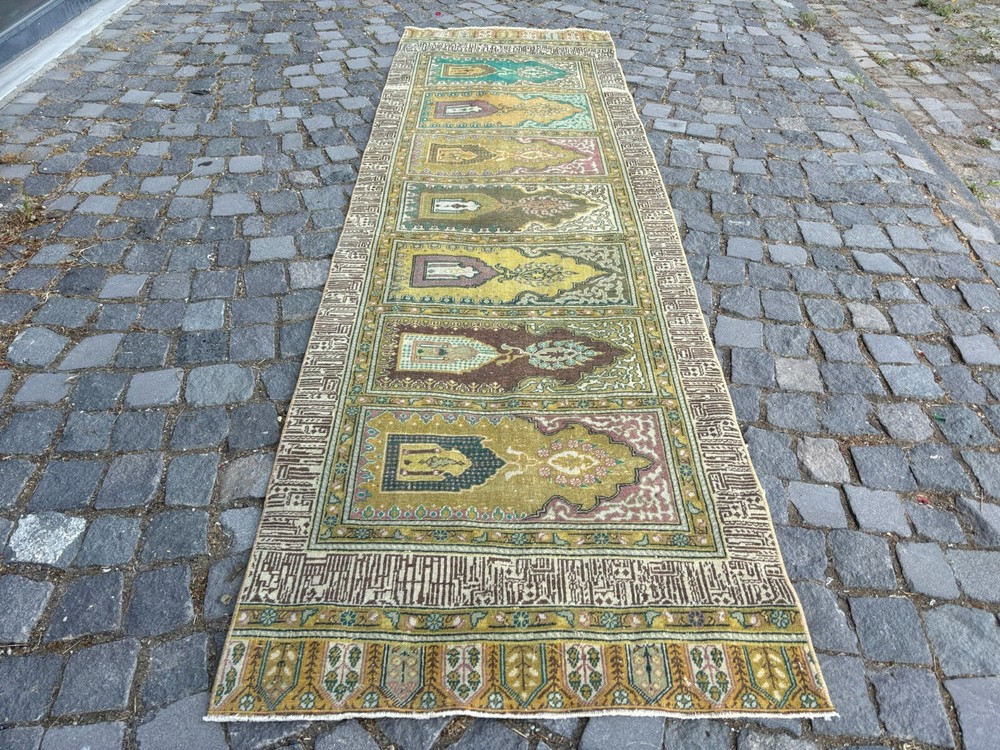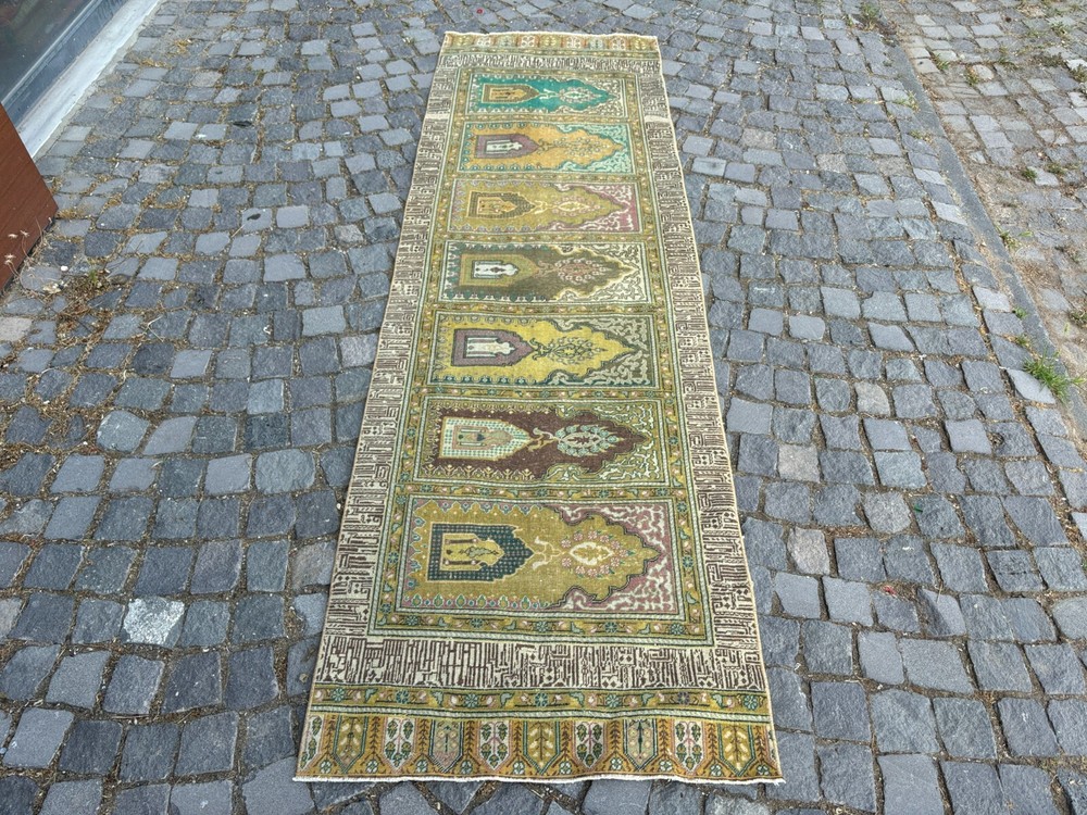 An old (approximately 45-60 years old) hand knotted / hand woven Turkish rug from the Middle Anatolian Region and made of genuine, high quality wool, in natural colors. Our distinguished Antiques and Vintage rugs, each with its own unique story, have been carefully selected from every corner of Turkey. RUG DETAILS * One-of-a-kind vintage rug * Dimensions: 2,8 x 9,3 ft = 34 x 113 inc = 87 x 286 cm * Low pile: approximately 0.2"(0.5 cm) * Dyed with natural dyes * Product code : RR 1699 SHIPPING * Free shipping on all items. * Usually shipped via FedEx or UPS. * Item will be ready for shipment within * Estimated delivery 3-5 business days 1-3 business days with a tracking number. All of our rugs have been professionally cleaned and ready to ship before being listed. These unique vintage rugs have normal wear related to their age. We believe this adds to the authenticity of these hand-woven beauties. We inspect all rugs carefully before Shipping, but in the unlikely event that due to our fault, the goods are not fit for purpose, damaged/defective, or we ship the wrong item, we will issue a 100% refund. We are a team of experienced professionals who are dedicated to ensuring your items arrive safely. Please note that our photos accurately represent the colors of the rug, however it may look different in the light in your home or against different colored floors. We are so excited to share the beauty and art of rugs with you and to see how your personal spaces transform! I do my best to build a great experience in online rug shopping for you, just look at the reviews. Please feel free to write me over conversation if you have any questions about the rug or price. I will be happy to answer to you. Thank you, Yusuf.