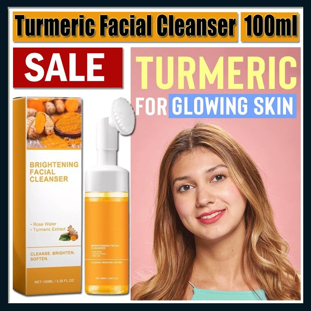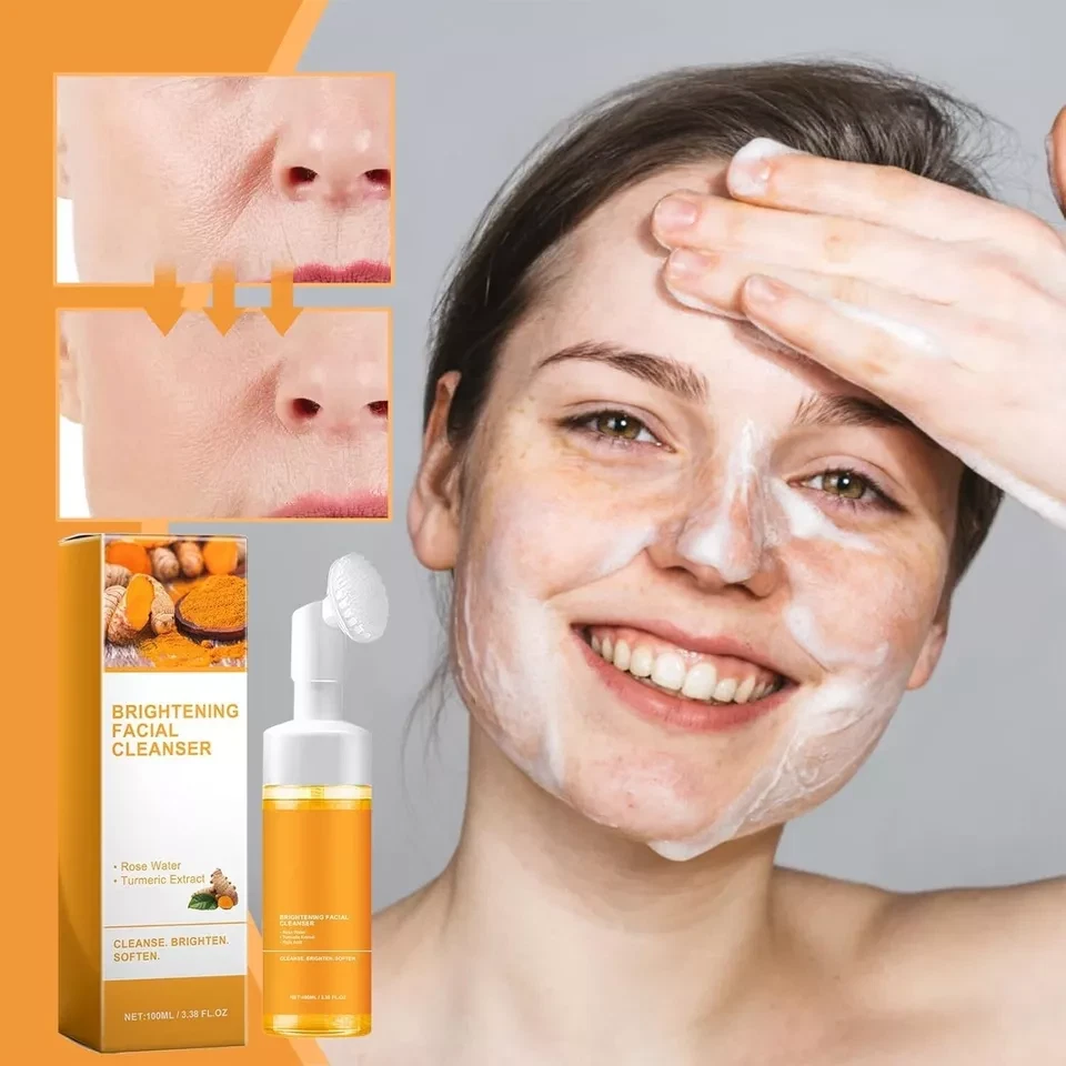 Turmeric Facial Cleanser Foaming Facewash With Silicone Cleansing Brush, 100ML π§΄ This all-in-one cleanser is designed to deeply cleanse, brighten, and purify your skin while combating dark spots and blemishes. The integrated silicone cleansing brush boosts exfoliation, making it easier to achieve smoother, radiant skin. βοΈ Naturally brightens skin and reduces pigmentation. βοΈ Foaming formula ensures gentle yet effective cleansing. βοΈ Easy-to-use silicone brush for added exfoliation benefits. How to Use : Wet your face and press the pump to dispense foam onto the silicone brush. Gently massage your face in circular motions with the brush. Rinse thoroughly with water and pat dry. Package Includes : 1 x Turmeric Facial Cleanser with Silicone Cleansing Brush (100ML) Additional Information : π± Paraben-Free | Sulfate-Free | Cruelty-Free π‘ Use daily for best results. Shipping & Returns : π Fast shipping with tracking provided. π 30-day return guarantee for peace of mind. Note to All Buyers: Please be aware that our products are stored in multiple 3rd-party USA warehouses. When we receive an order, we ship directly from the nearest fulfillment center to ensure the fastest delivery. If you experience any issues with your order, we kindly ask that you contact us directly before leaving any negative feedback or opening a case. We are committed to resolving any concerns you may have and ensuring your satisfaction. Thank you for your understanding and support!