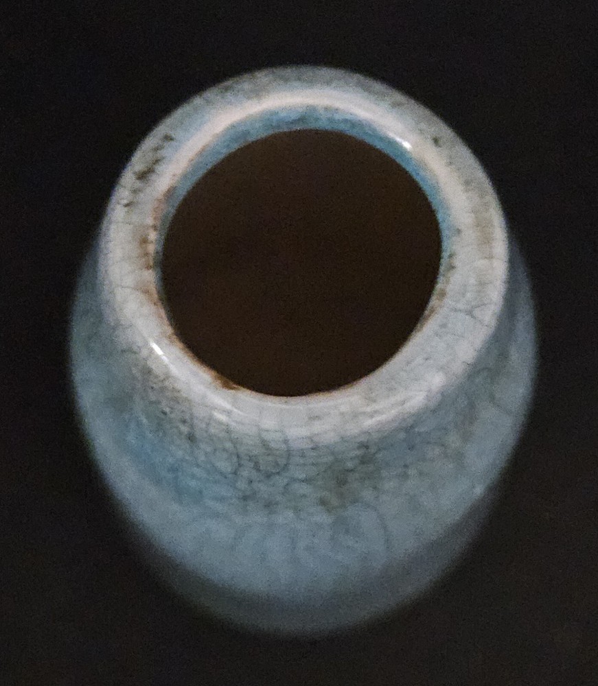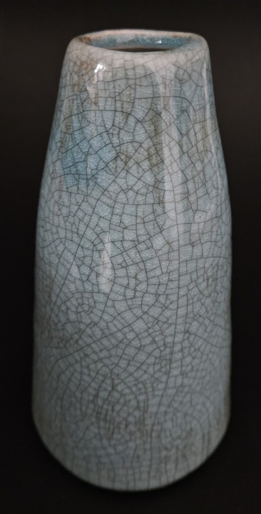 Glazed terracota turquoise cone shaoed vase. 6"T x 3"W at base. No chips, cracks or damage. Excellent condition.
