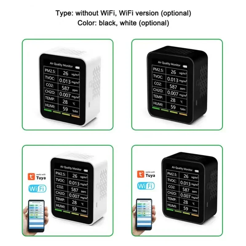 Tuya CO2 Carbon Dioxide Sensor VOC Detector NDIR High-precision Measurement Exceeds Standard Alarm Smart Home Linkage Tuya Senso Description: Working temperature: -20--85℃ Working voltage (rated): 4.8-12V Working current: 10-496ma Size: 90*90*35mm Power supply mode: USB 5V/1A Communication protocol: WIFI 2.4GHZ color: White Shell material: PVC Examination range: Formaldehyde: 0-10.0 (mg/m3) VOC: 0-99.9 (ppm) Carbon dioxide: 0-1000 (ppm) Temperature: 0-60 (℃) Humidity: 0-95 (%) After being paired to the APP, it can be linked with various smart home products. For example, when detecting excessive formaldehyde/VOC, the smart air purifier is automatically turned on; when the carbon dioxide is exceeded, the smart fresh air fan is automatically turned on; when the temperature is abnormal, the air conditioner temperature is automatically adjusted ; When the humidity is too low or too high, the smart humidifier will be turned on/off automatically; when a certain parameter is detected to exceed the standard, a message will be sent to the alarm (the above smart linkage function needs to be matched with the smart home product) 100% Brand New and High Quality! Smart air box is the home of intelligent device for remote monitoring of air environment,It can also detect formaldehyde, VOC of poisonous gas, CO2, temperature, humidity and so on 5 kinds of environmental parameters,In environmental parameters exceed bid automatically when the graffiti smart home air conditioning, new fan, humidifier, air purifier on household environment optimization. The detection range of the smart air box: formaldehyde, VOC gas, CO2, temperature, humidity Specifications: 1. 100% Brand New and High Quality:The product is 100% brand new and of high quality. 2. Smart air box:It is a smart air box that serves as the home for an intelligent device for remote monitoring of the air environment. 3. The detection range of the smart air box::The detection range of the smart air box covers formaldehyde, VOC gases, CO2, temperature, and humidity. 4. Optimizing the home environment:When the environmental parameters exceed certain levels, the graffiti smart home air conditioning, new fan, humidifier, and air purifier automatically adjust to optimize the household environment. 5. Improving the quality of living environment:The smart air box is a reliable and convenient solution for improving indoor air quality and creating a healthier living environment. Package Included: smart air box X1 Instruction for use X1 Card pin X1 USB power supply cord X1 Notes: please do not put air box at lampblack is too big, strong convection air or in high concentration organic gas for a long time, otherwise it will damage the sensor.