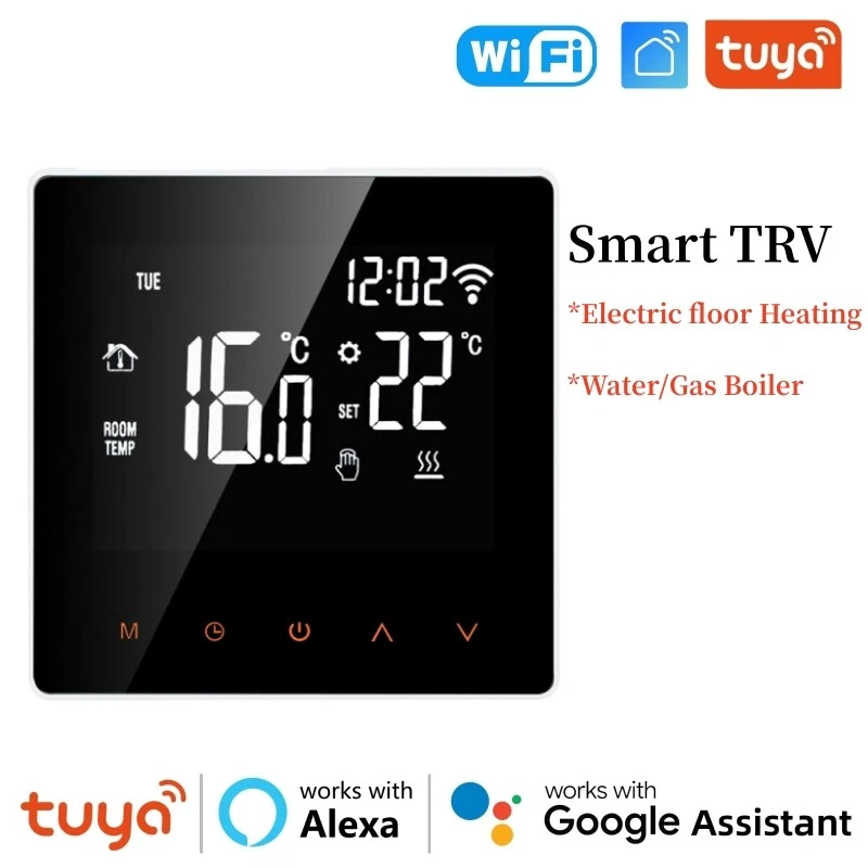 Description: [ LCD Touch Display ] - Elegant appearance, one face design, anti-scratch. Large LCD touch screen display with back light, easy to read. [ APP /Voice Control ] - Smart thermostat that can be controlled by your phone before you come back home. (APP: Tuya / Smart life. voice control by Goolge home alexa) [ Manual/ Auto Mode] - Free to choose manual mode or auto mode for different purposes. [ Accurate Temperature ] - Internal sensor floor sensor, perceptive ambient temperature and the floor's temperature. Automatically obtain the temperature, 1°C accuracy. [ Weekly Programmable ] - The thermostat supports different temperature setting accordingly with 6 time-modes daily. [ Memory Function ] - No need to worry about power failure, data memory when power is off. [ Children Lock ] - Keypad locking function is designed to prevent children from operating by mistake. [ Application ] - Suitable for electric heating/water gas boiler/water heating.Perfect for home, office, shopping mall, hotel, etc. Specifications: -- Type: Wi-Fi smart thermostat -- Material:anti-flammable PC -- Voltage:110-230V AC,50/60HZ -- Max. Current Load: 16A/3A -- Temperature Accuracy: 1℃ -- Temperature Setting: 5-95℃ -- Key: Touch Key -- Item Size: 86 * 86 * 40mm / 3.4 * 3.4 * 1.6in Package Included: 1*EU Toucn Switch 1*User Manual