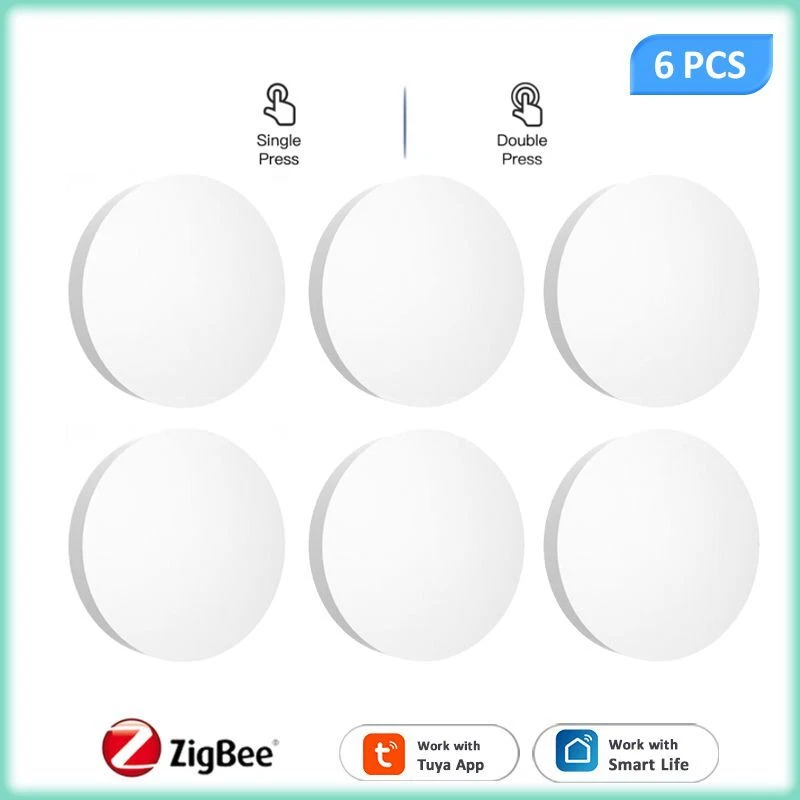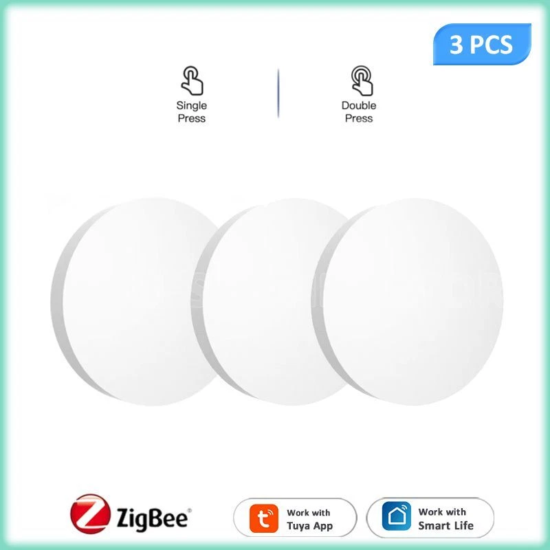 Tuya ZigBee Smart Push Button Scene Switch Wireless Remote Control on Off Key Controller Multi-scene Linkage Smart Switches Notes: Need to be used with zigbee gateway. Control tuya smart's devices. Description: 1. 【Custom/Key Operation Scene mode】 Smart scene button, matching the smart scene, one key to open the smart scene. You can freely set scenes or lights on TUYA Smart. In the scene mode, the button respectively support single click, double click scene requirements. You don't need to click the scene mode on your phone, just click the ZigBee smart remote control to open the smart scene. For example, movie mode: turn on the TV, turn off the lights in the living room, draw the curtains, turn on the TV ambient light, and turn on the audio. Simply click the remote control button to do it easily. 2. 【Can control any smart device (provided by TUYA)】 Control lights, electronics and small appliances from anywhere. 3. 【Ultra-low energy consumption, battery-powered】 the battery life can be up to 1 years, without frequent battery replacement. No wiring required. 4. 【No need to install】 Can be hung on the wall, can also be placed on the table, and you can get it at your fingertips! Specifications: Power supply: Battery CR2032 3V DC (the battery is not included in the package) Communication: Zigbee 3.0 Control distance: 25m open area Dimensions: 50mmx50mm Operating temperature:-10°C-45°C Working Humidity: <90% RH Life of battery: 1 years (General use) Package Included: 1*scene botton 1*manual